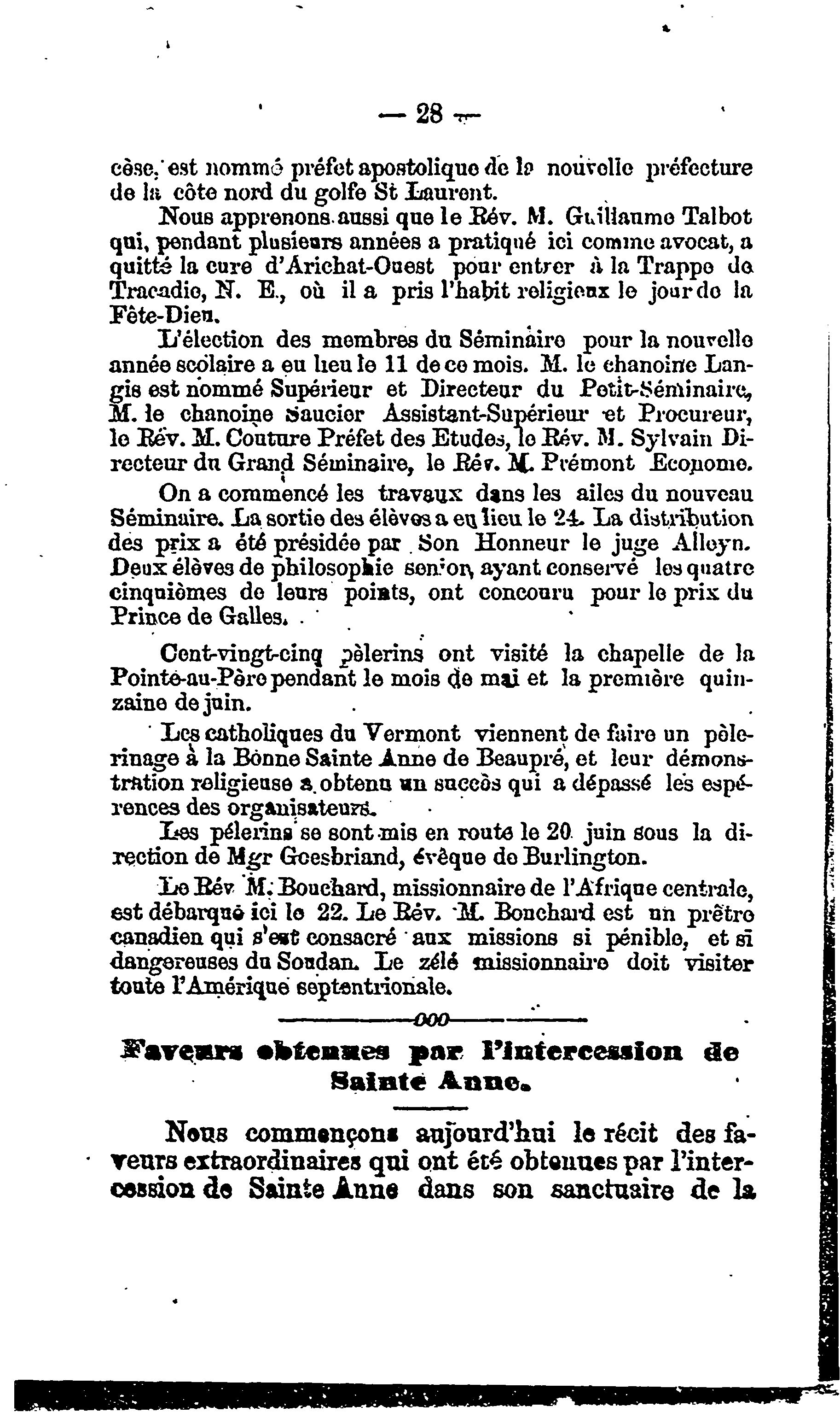 Bulletin de Ste Anne de la Pointe-au-Père [Vol. 1, no 2 (juin 1882)]