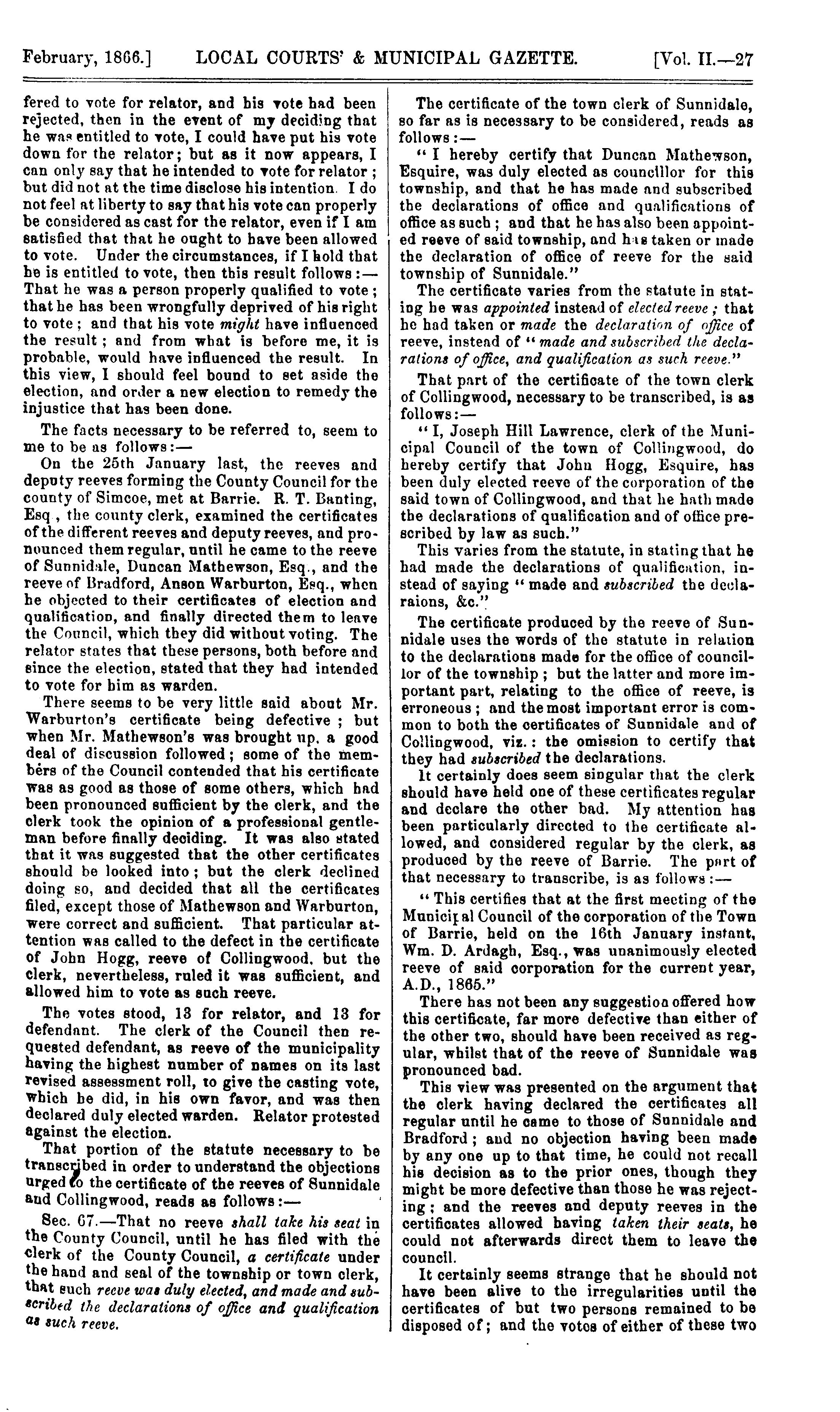 - The local courts' and municipal gazette [Vol. 2 (Feb. 1866)]
