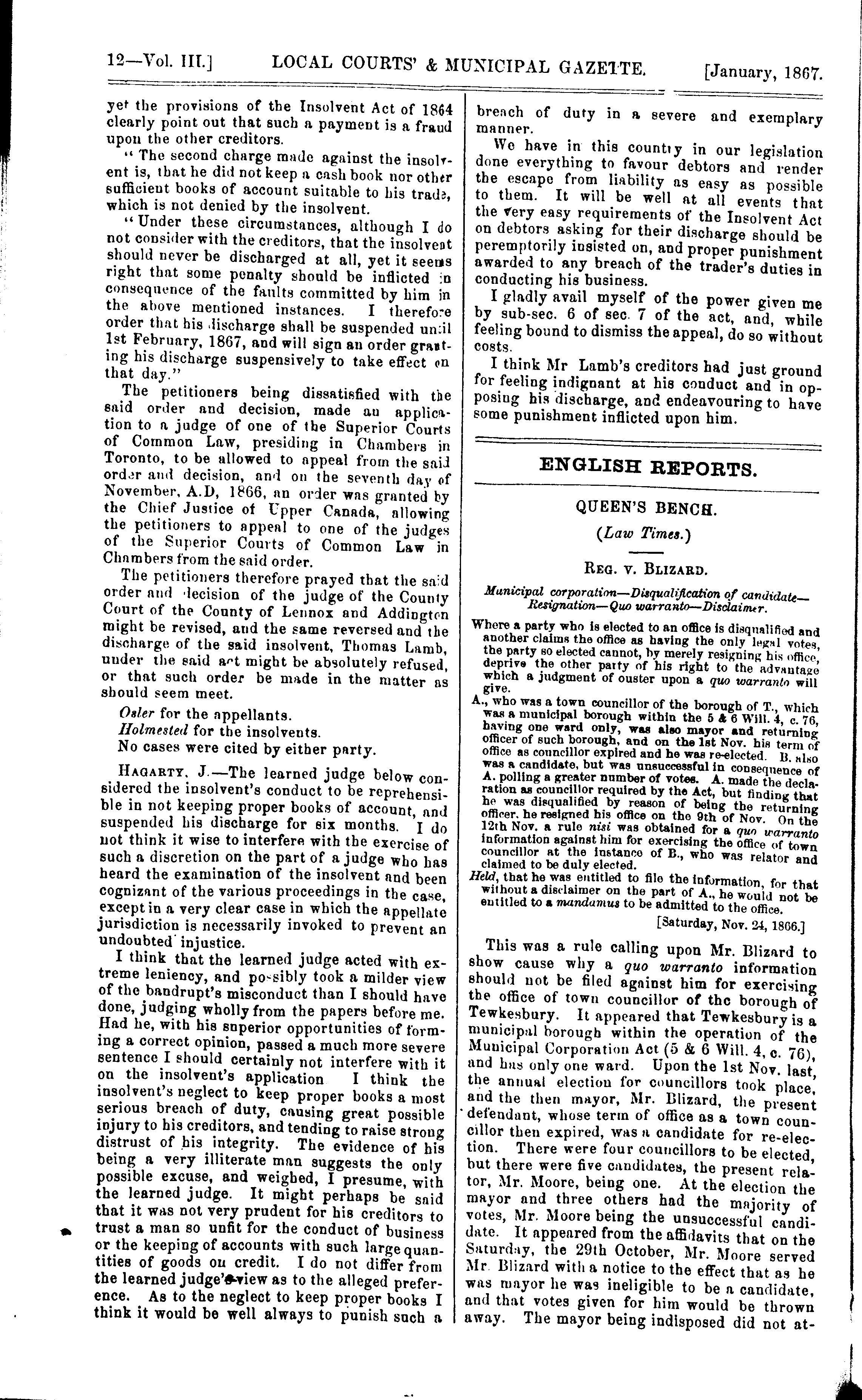 The local courts' and municipal gazette : [Vol. 3 (Jan. 1867)]