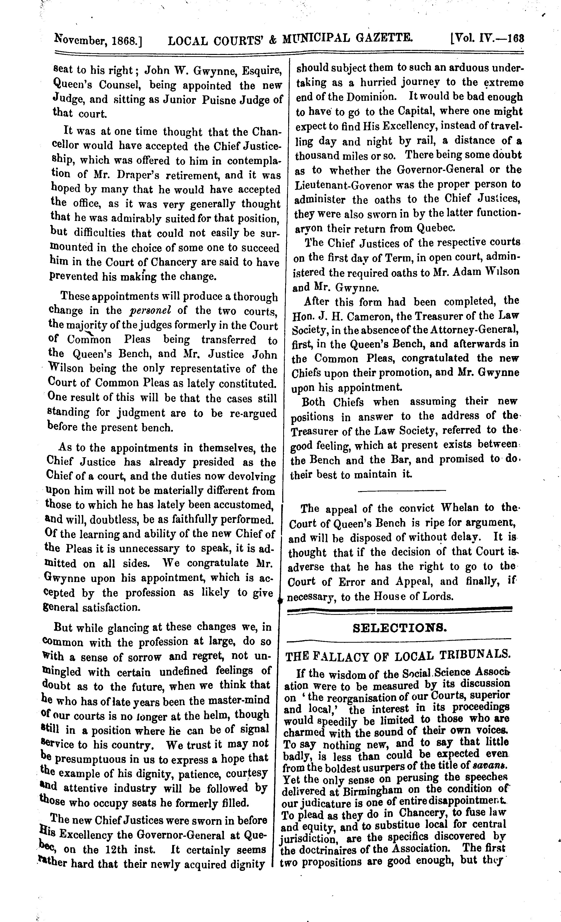 The local courts' and municipal gazette : [Vol. 4 (Nov. 1868)]