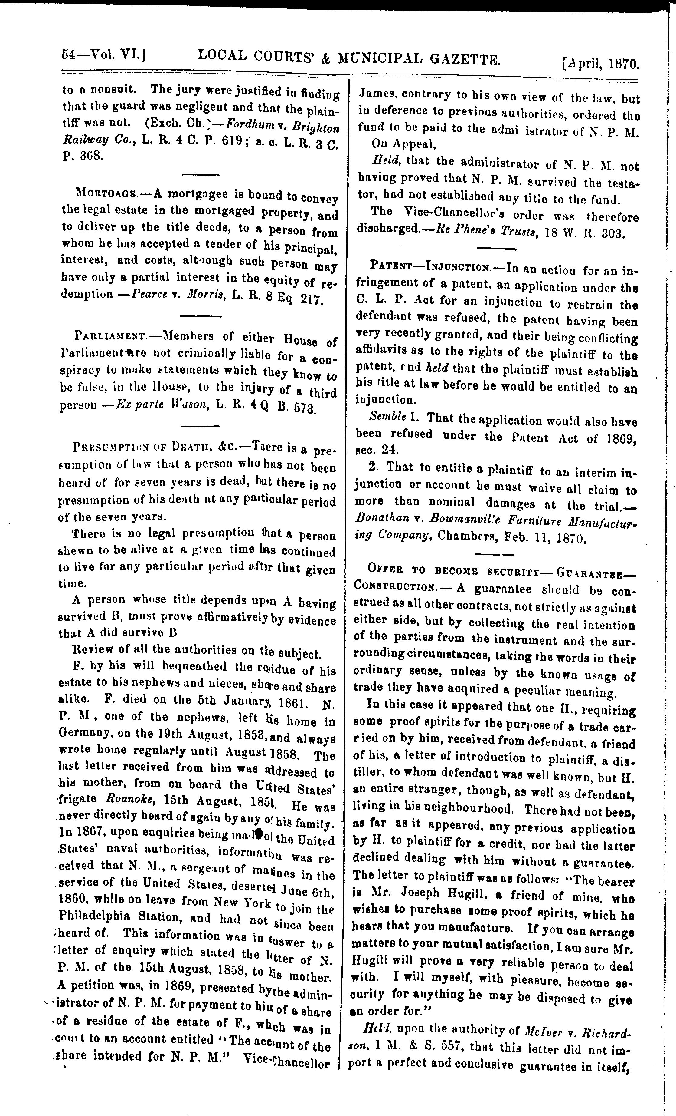 The local courts' and municipal gazette : [Vol. 6 (Apr. 1870)]