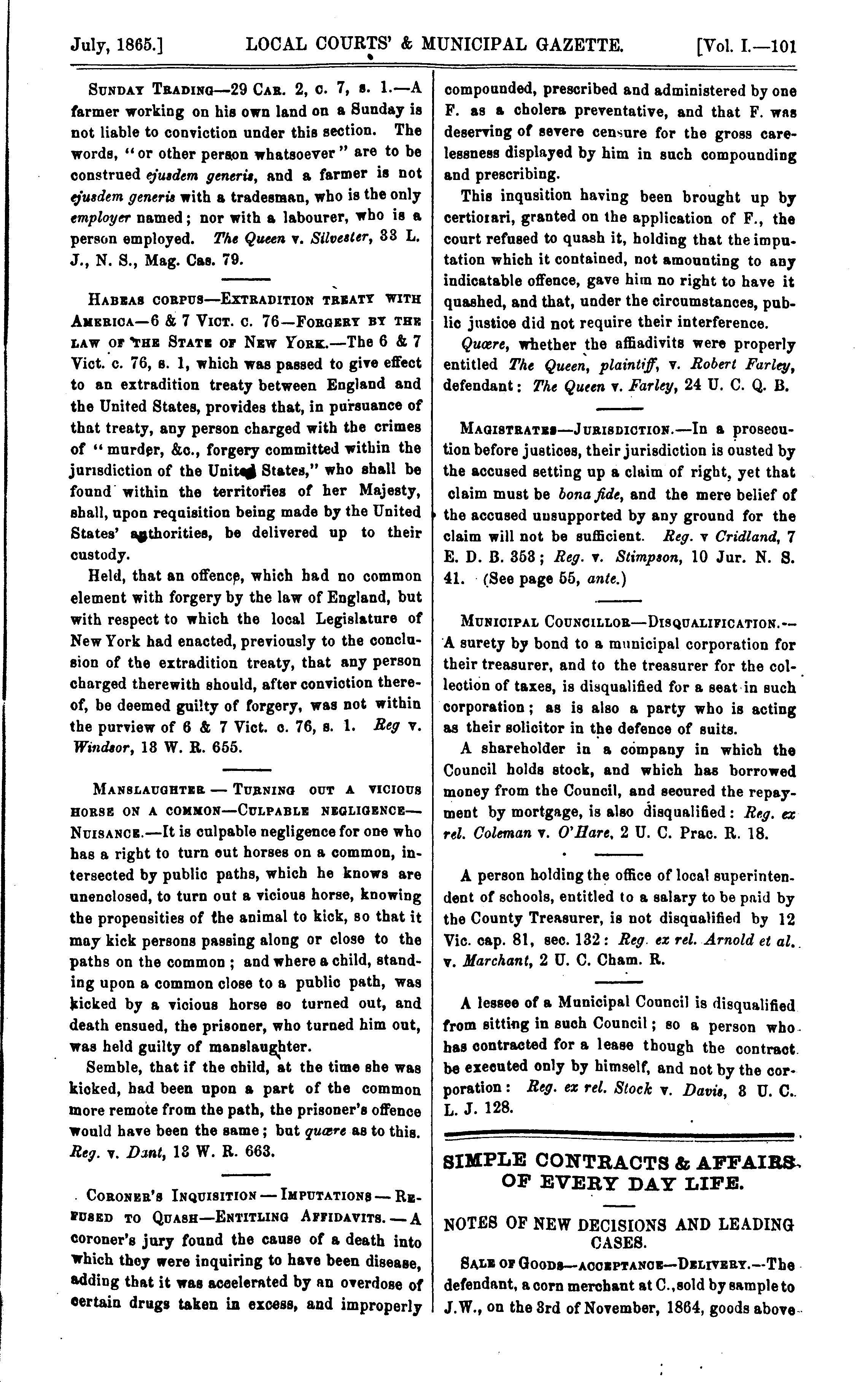 The local courts' and municipal gazette : [Vol. 1 (July 1865)]