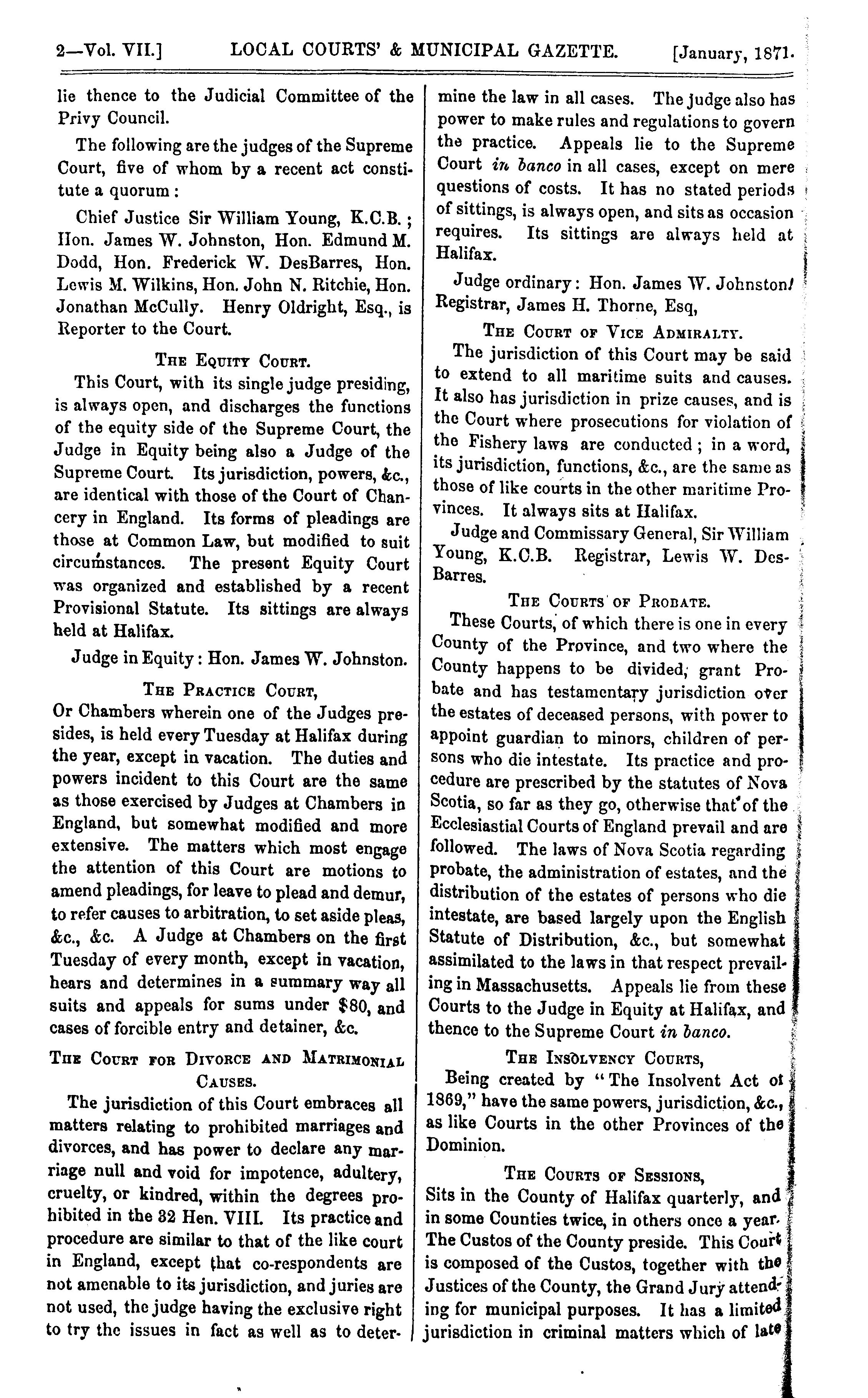 - The local courts' and municipal gazette [Vol. 7 (Jan. 1871)]