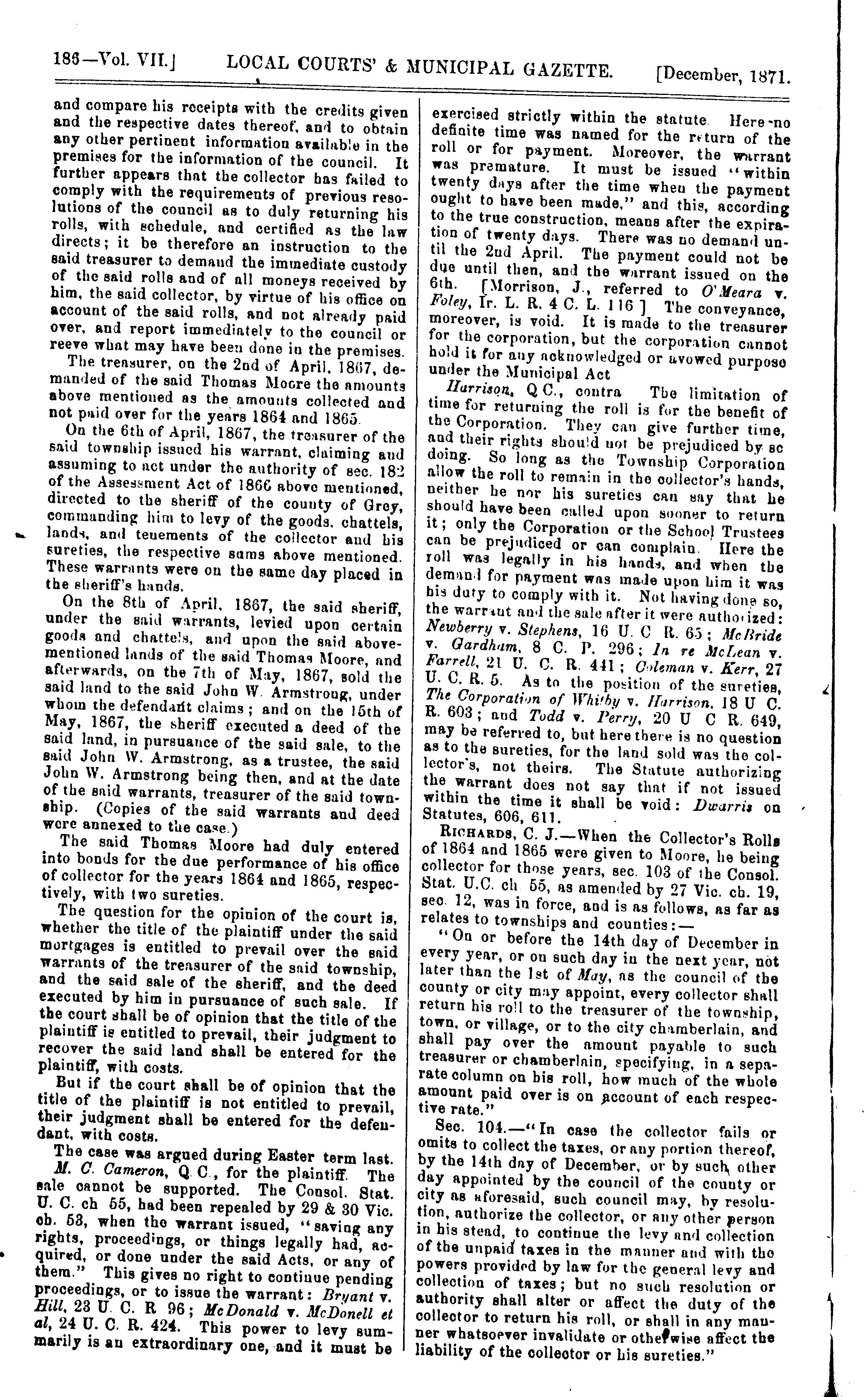 The local courts' and municipal gazette : [Vol. 7 (Dec. 1871)]