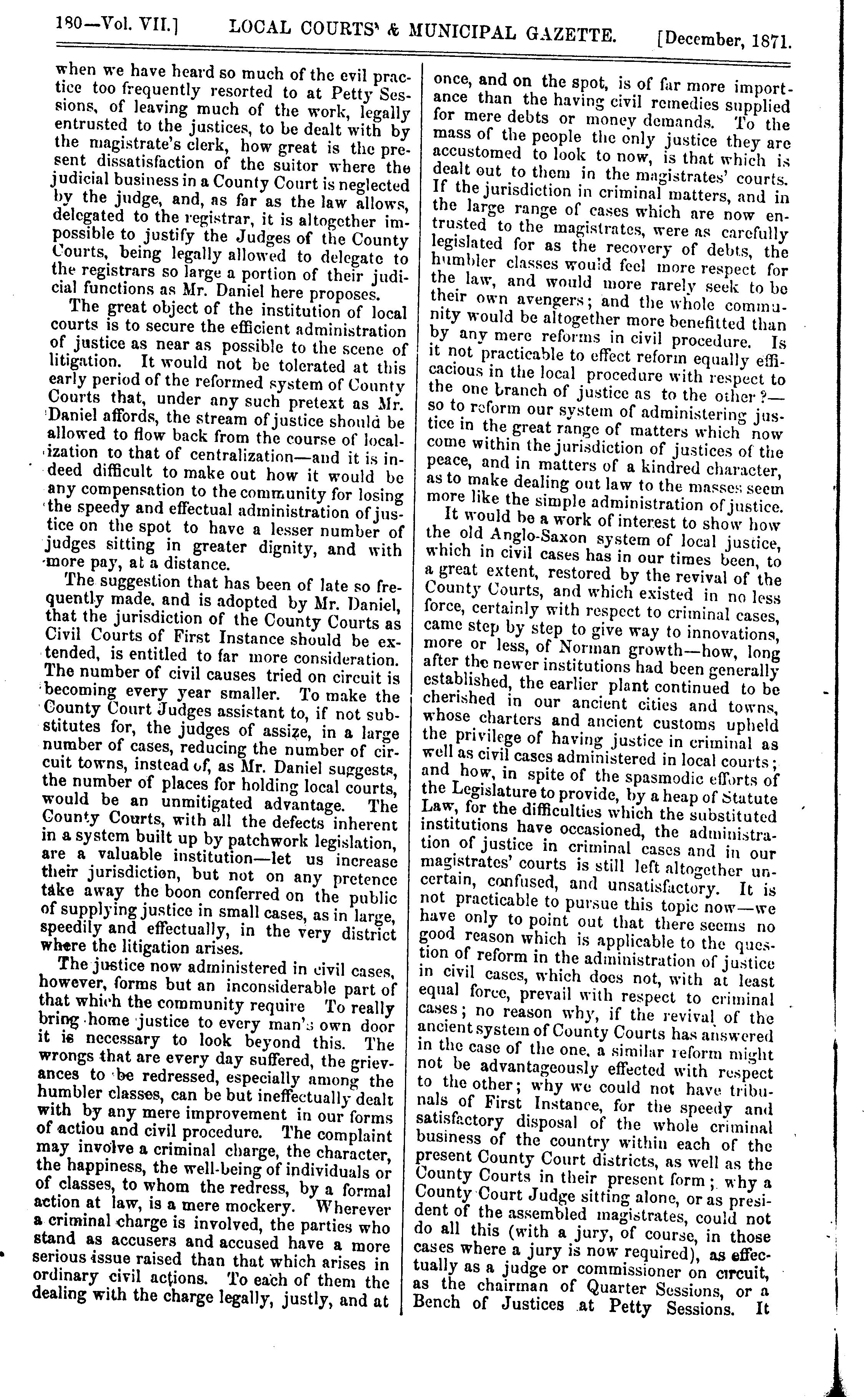 - The local courts' and municipal gazette [Vol. 7 (Dec. 1871)]