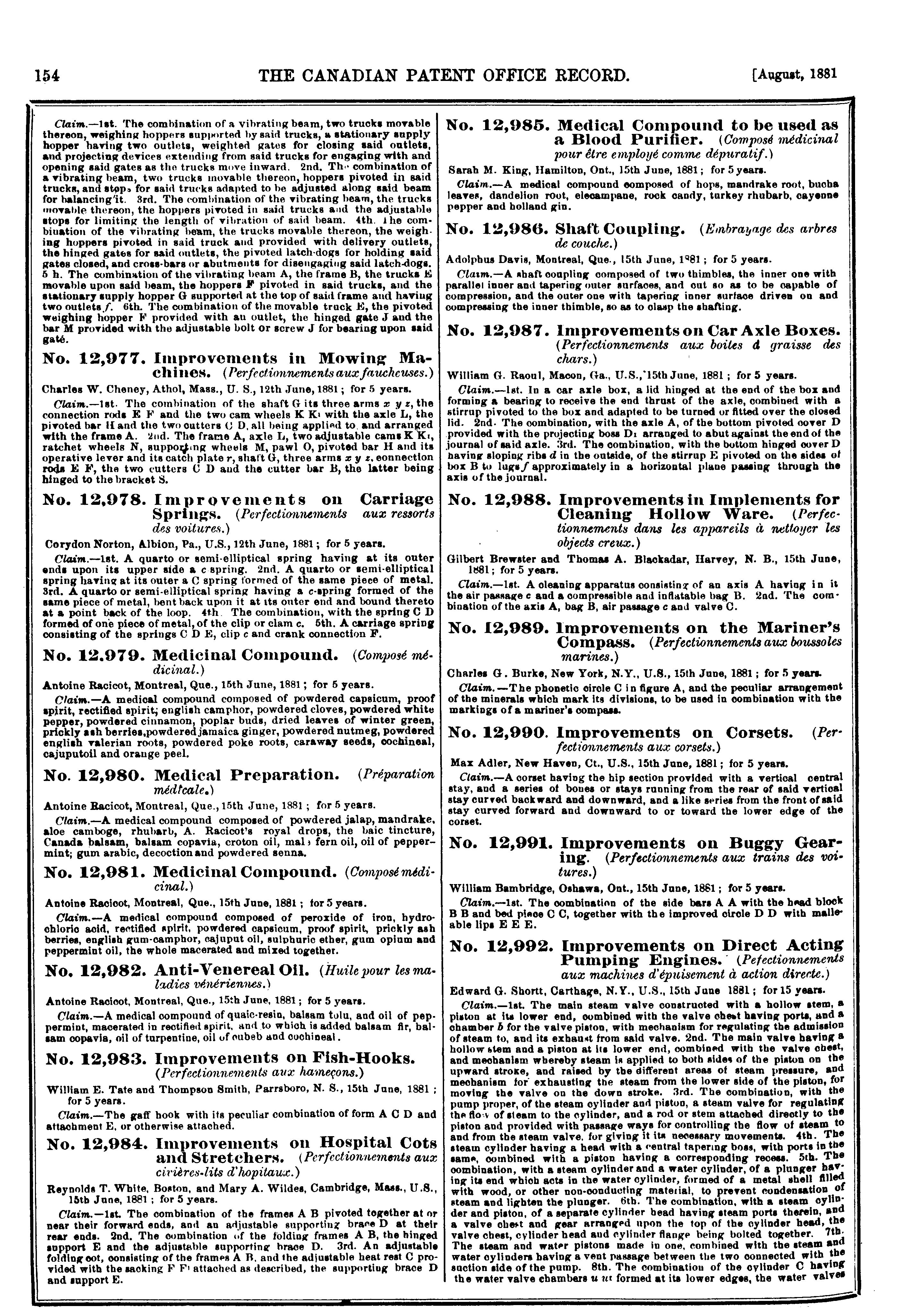 The Canadian Patent Office record [Vol. 9, no. 8 (Aug. 1881)]