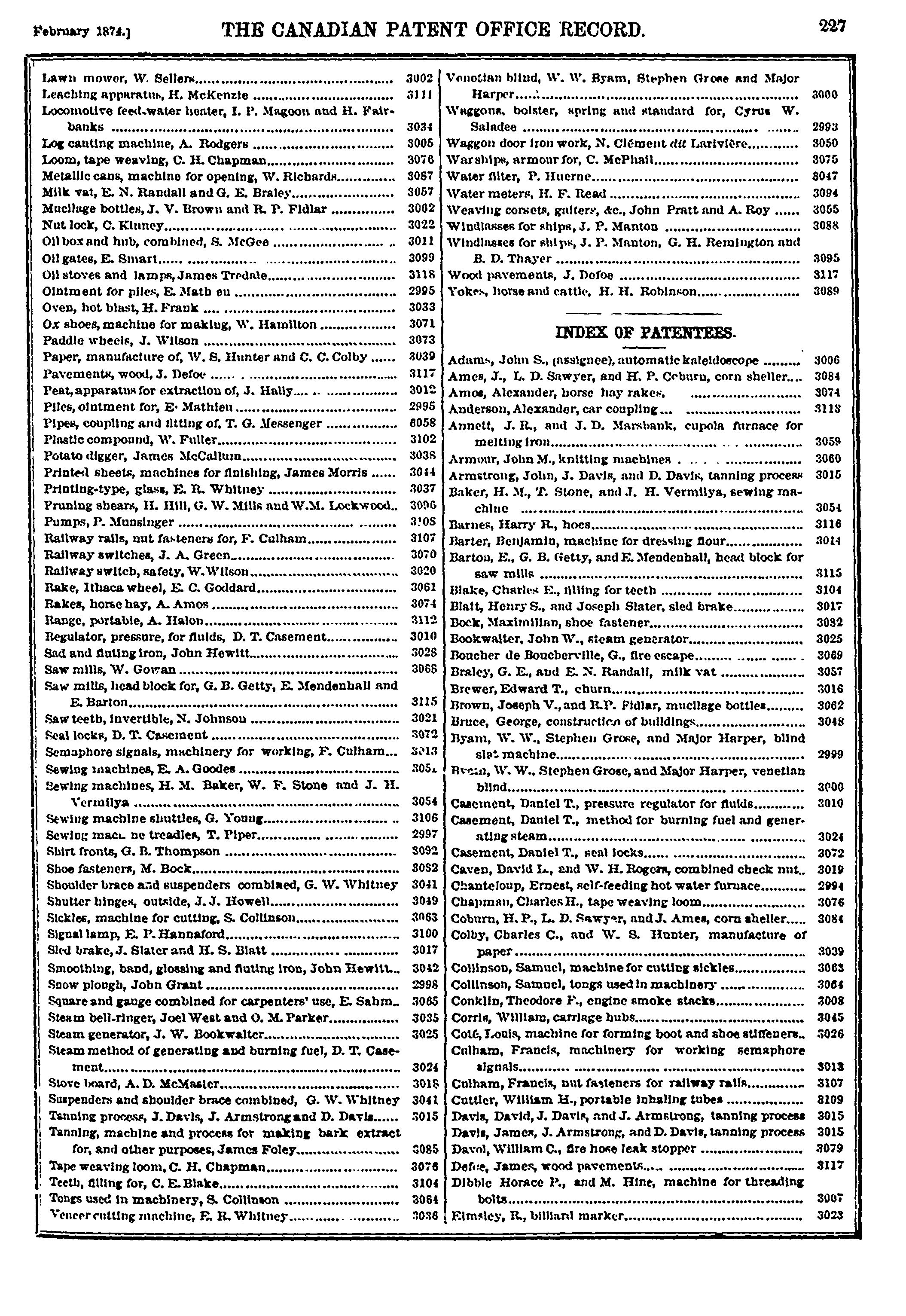 The Canadian Patent Office record : [Vol. 1, no. 11 (Feb. 1874)]