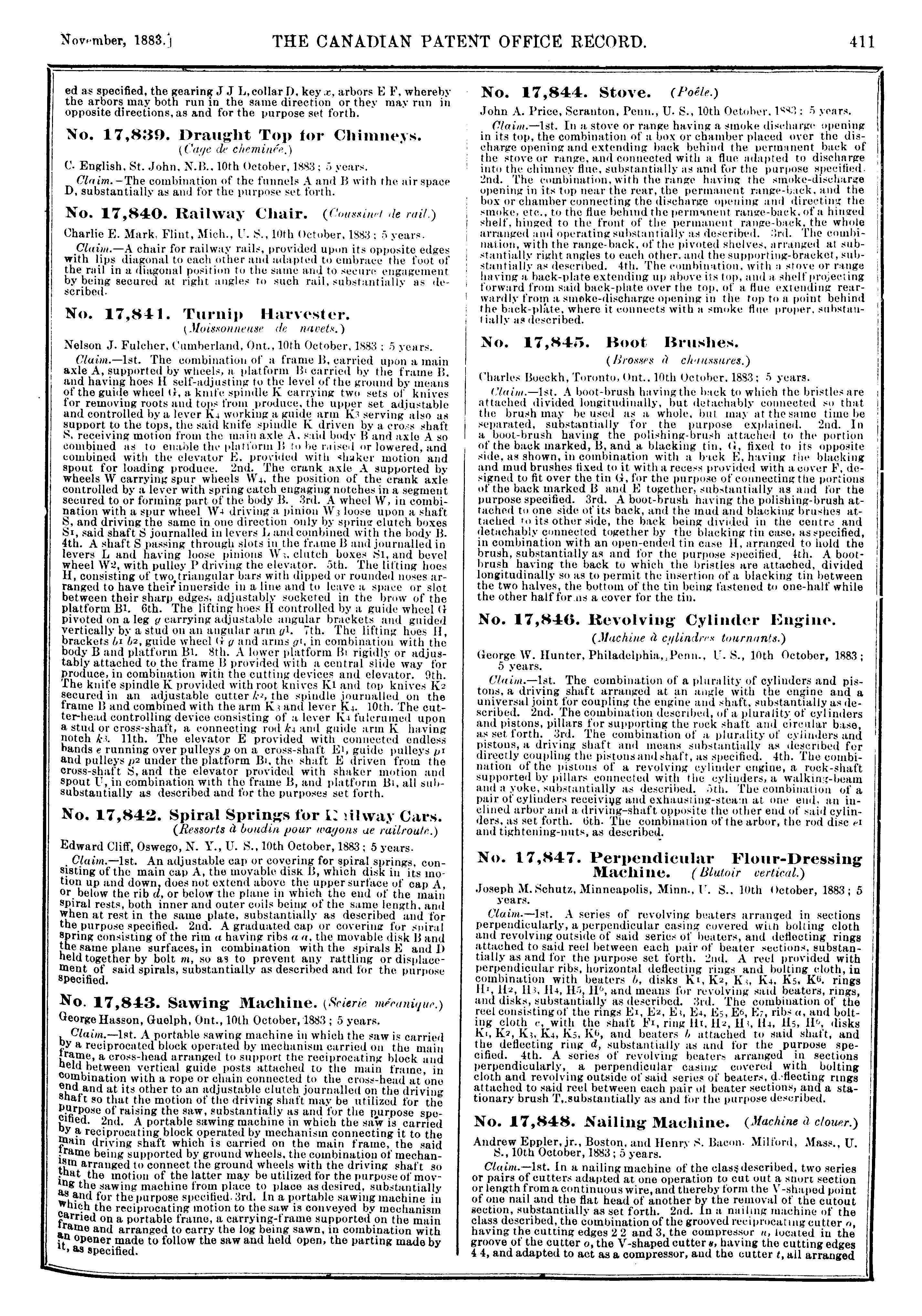 The Canadian Patent Office record [Vol. 11, no. 11 (Nov. 1883)]