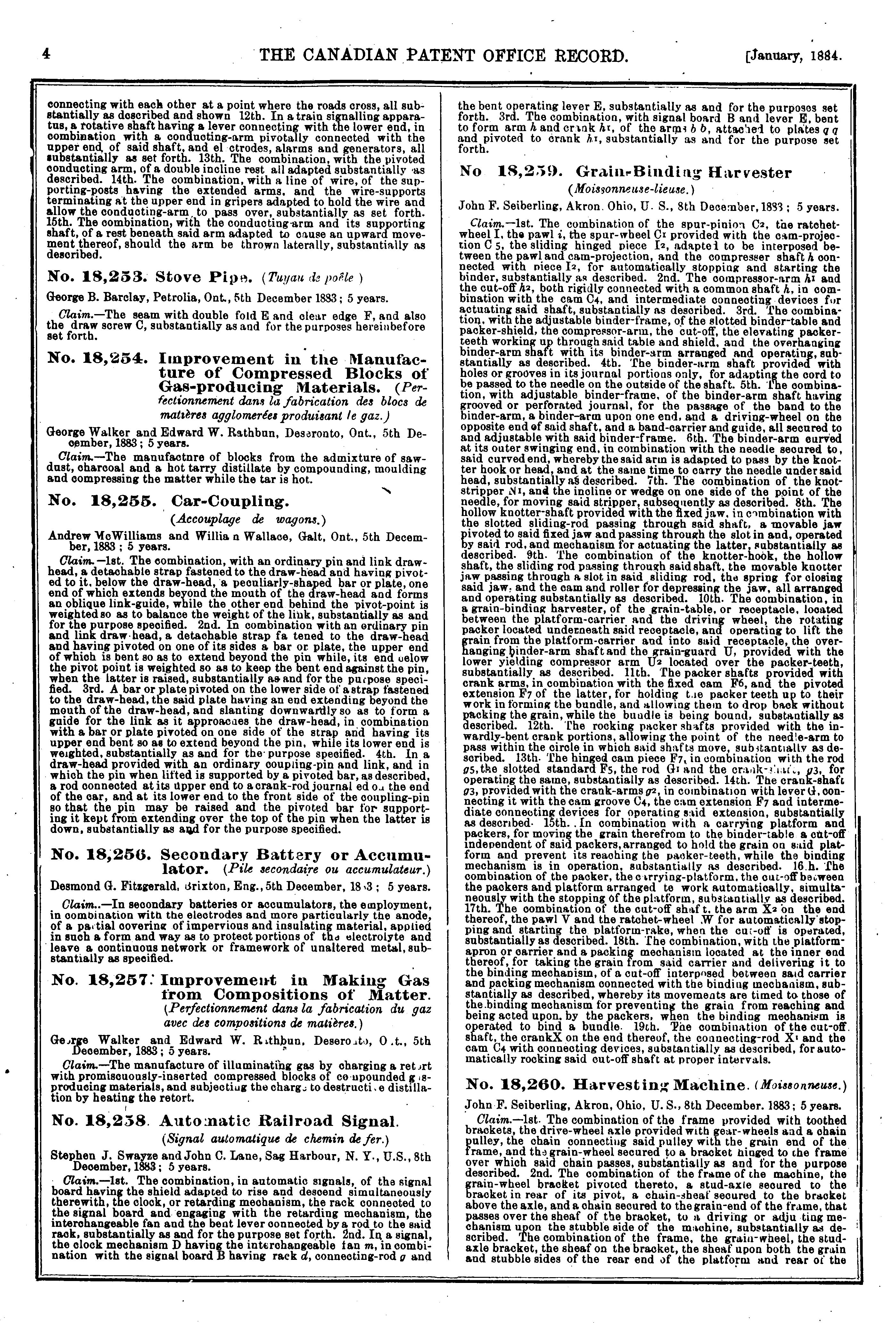 The Canadian Patent Office record [Vol. 12, no. 1 (Jan. 1884)]