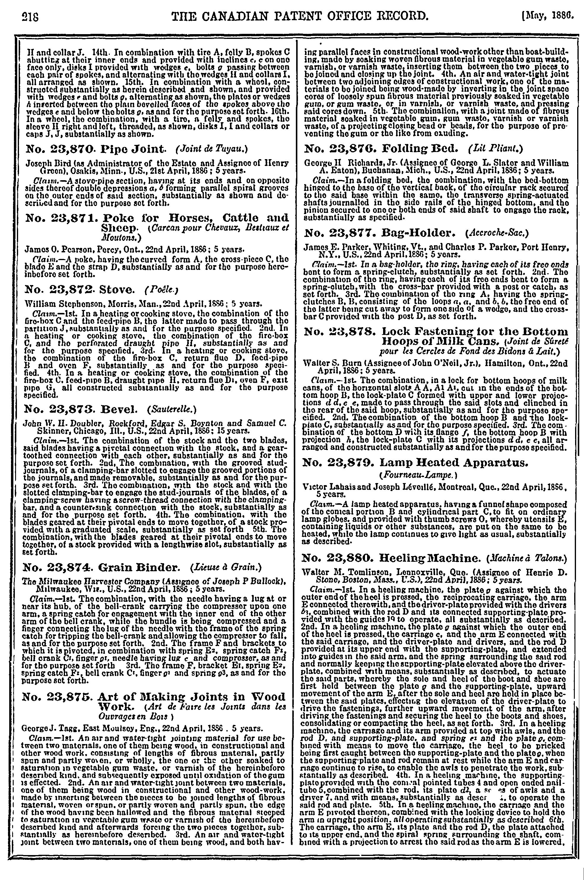 - The Canadian Patent Office record [Vol. 14, no. 5 (May 1886)]