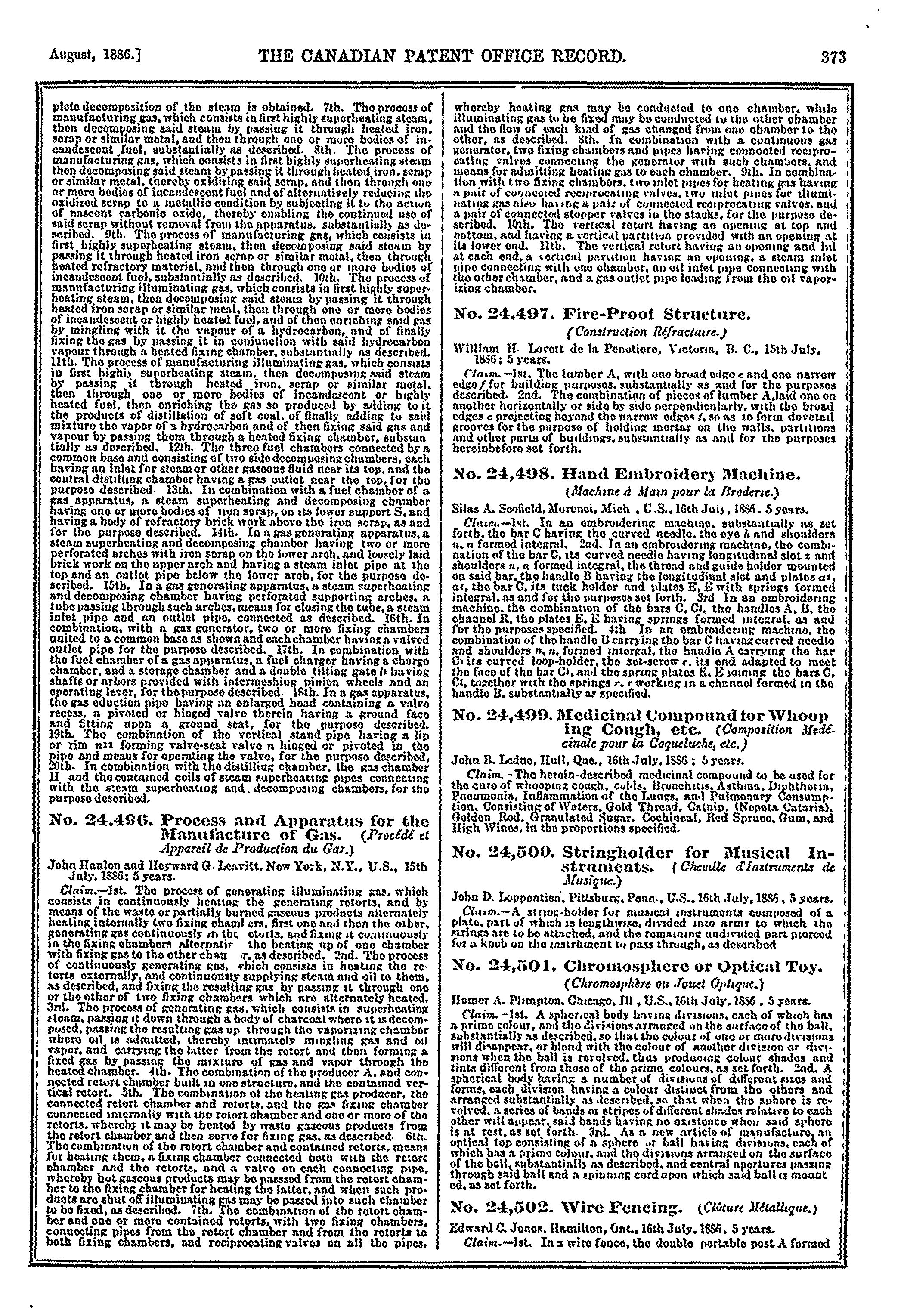 The Canadian Patent Office record : [Vol. 14, no. 8 (Aug. 1886)]