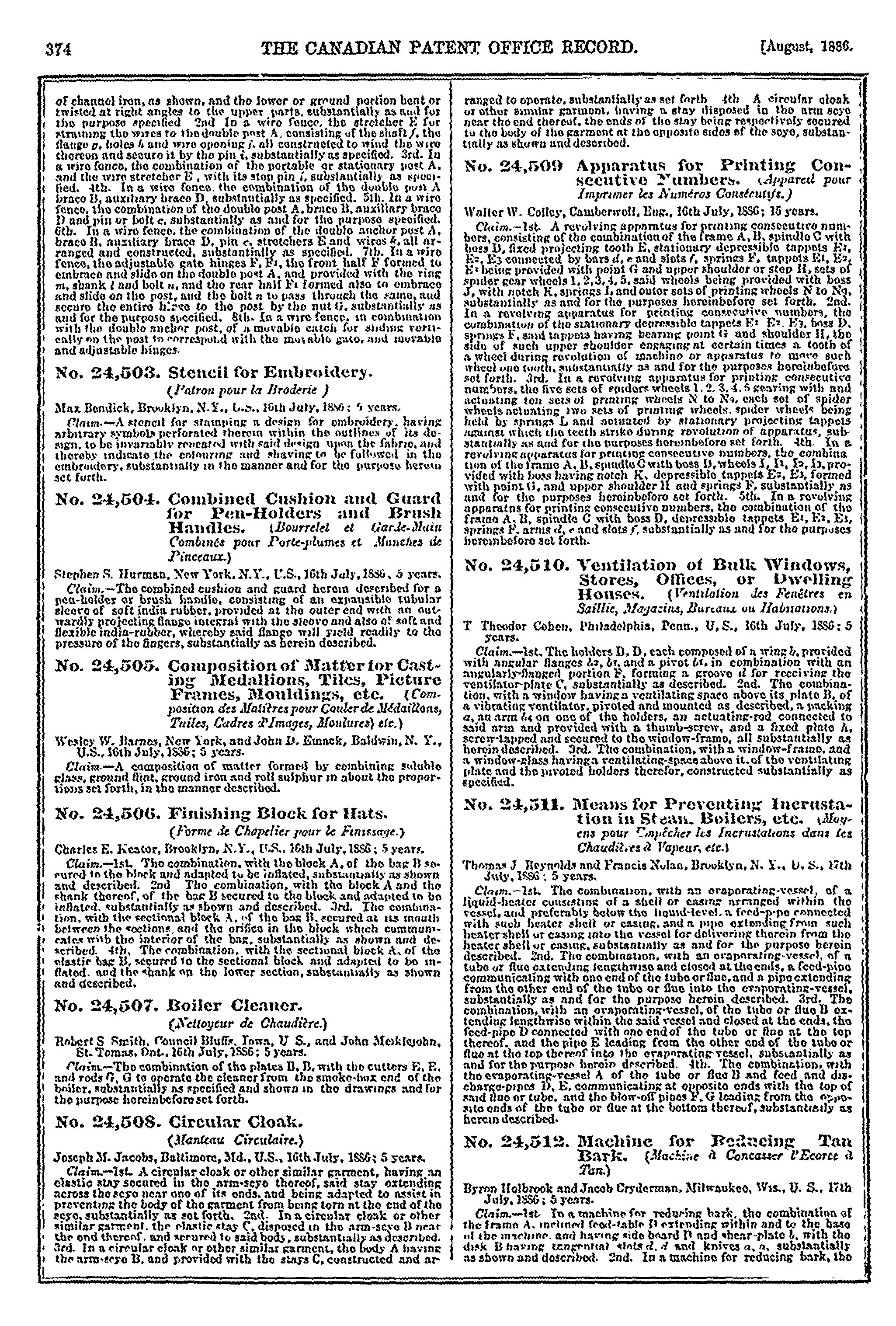 - The Canadian Patent Office record [Vol. 14, no. 8 (Aug. 1886)]