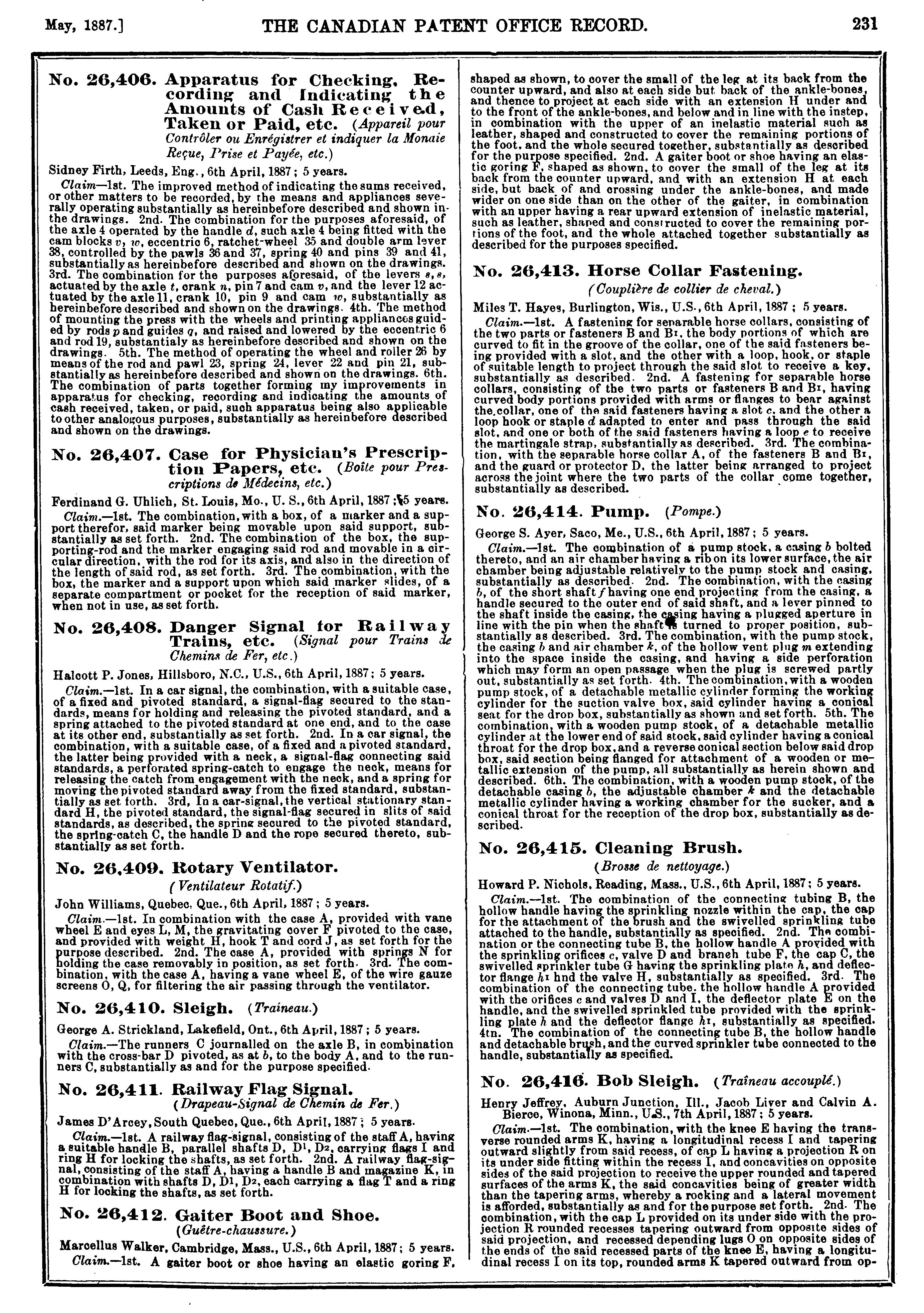 - The Canadian Patent Office record [Vol. 15, no. 5 (May 1887)]