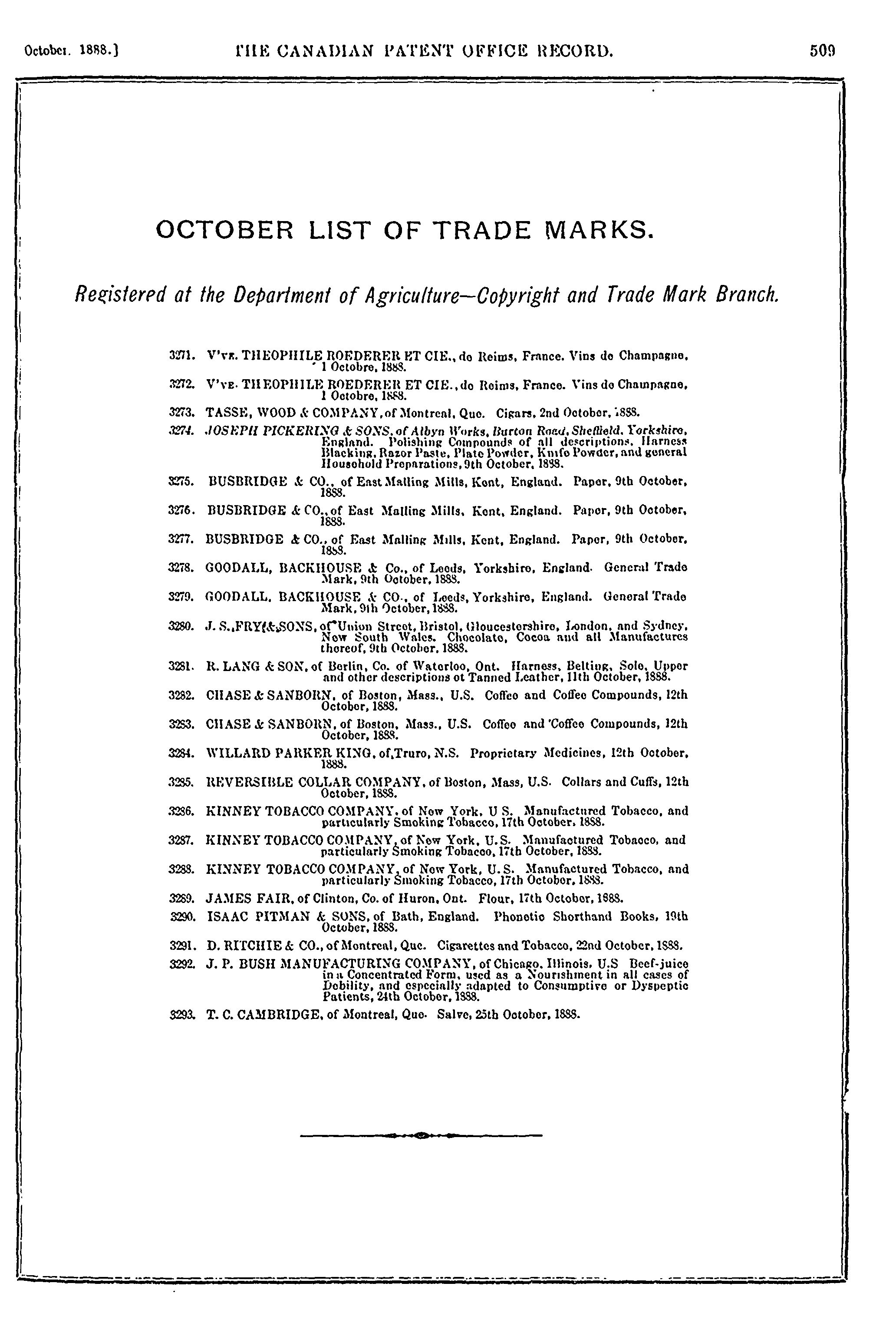 The Canadian Patent Office record [Vol. 16, no. 10 (Oct. 1888)]
