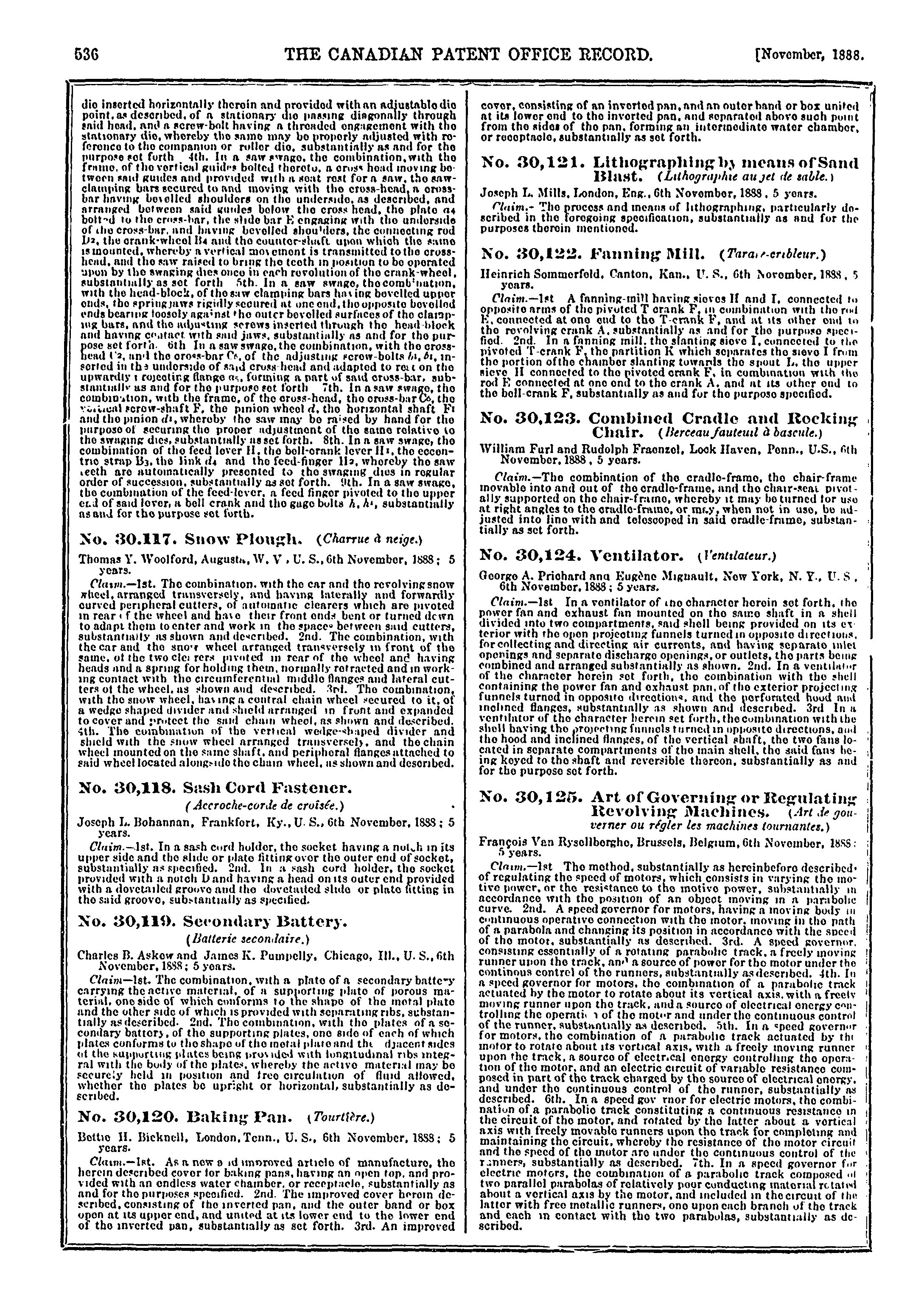 - The Canadian Patent Office record [Vol. 16, no. 11 (Nov. 1888)]