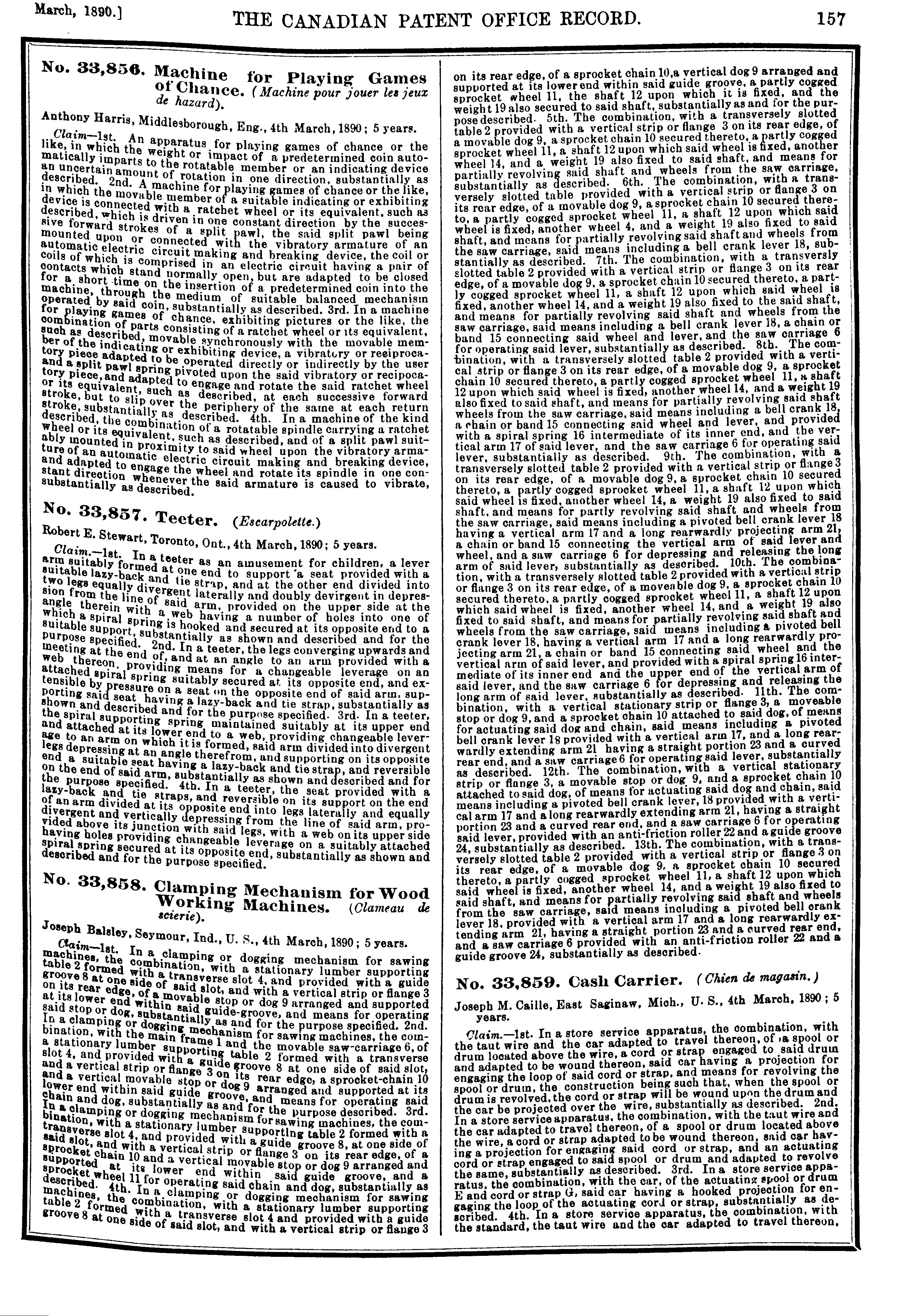 The Canadian Patent Office record [Vol. 18, no. 3 (Mar. 1890)]