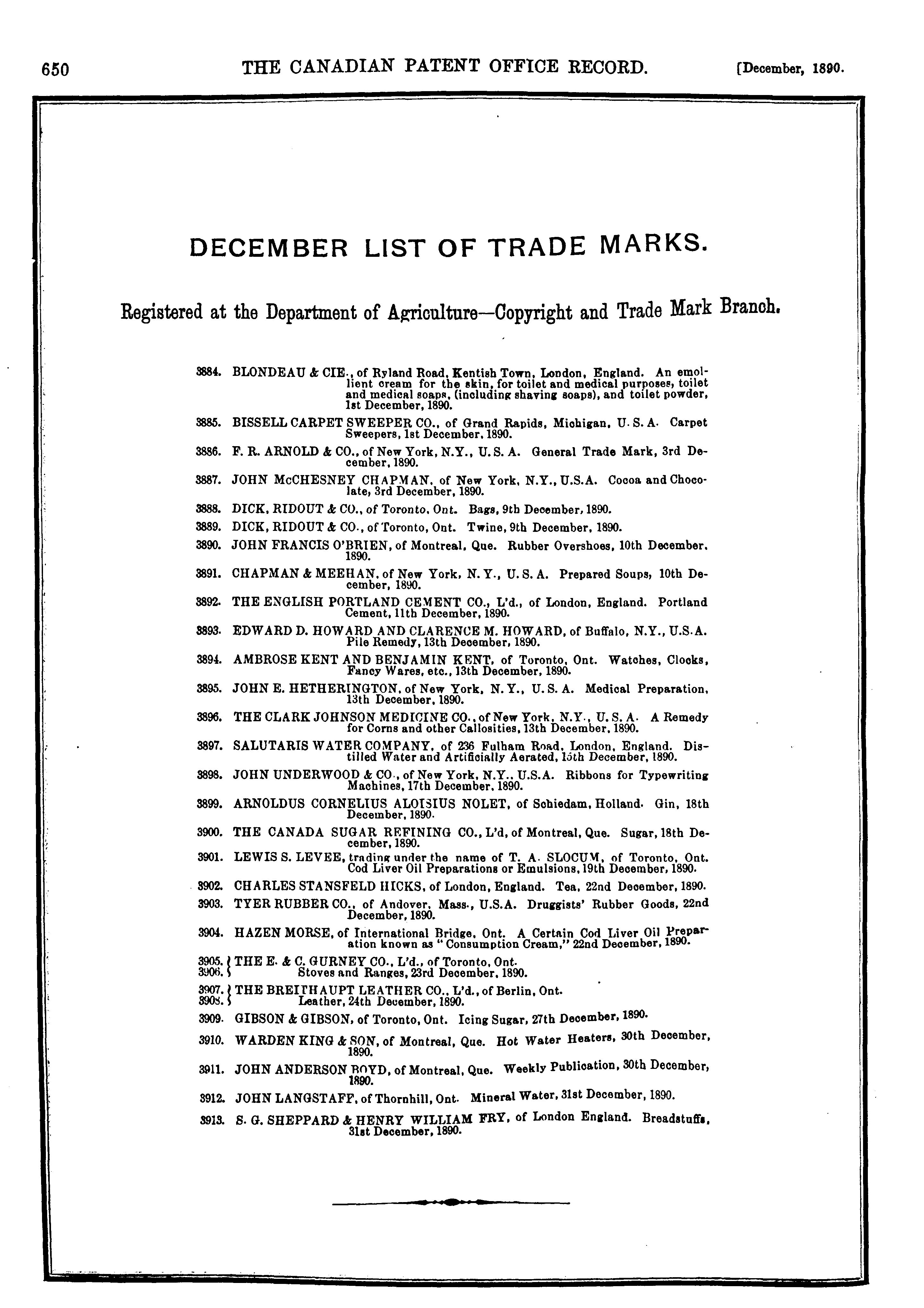 - The Canadian Patent Office record [Vol. 18, no. 12 (Dec. 1890)]
