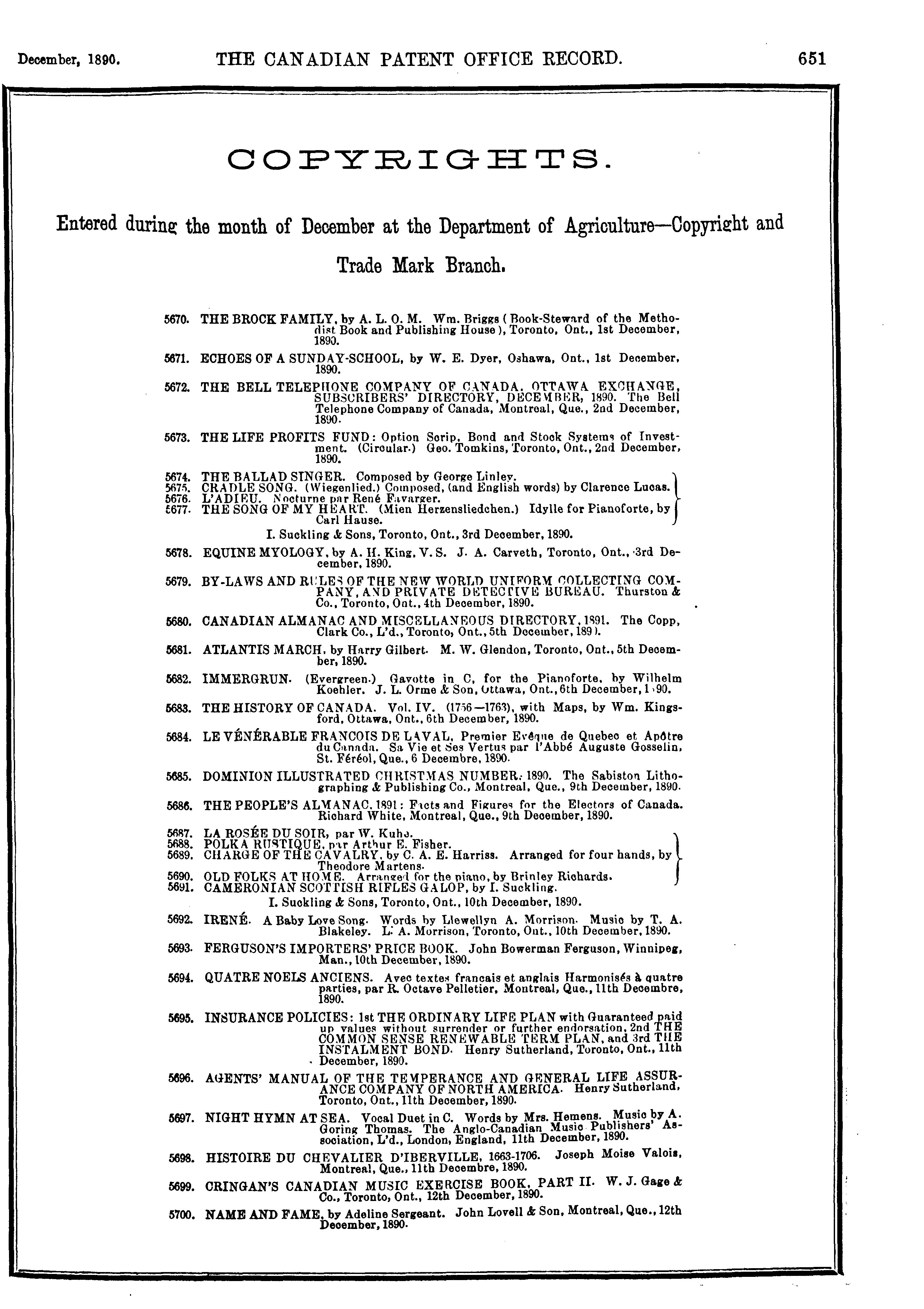 - The Canadian Patent Office record [Vol. 18, no. 12 (Dec. 1890)]