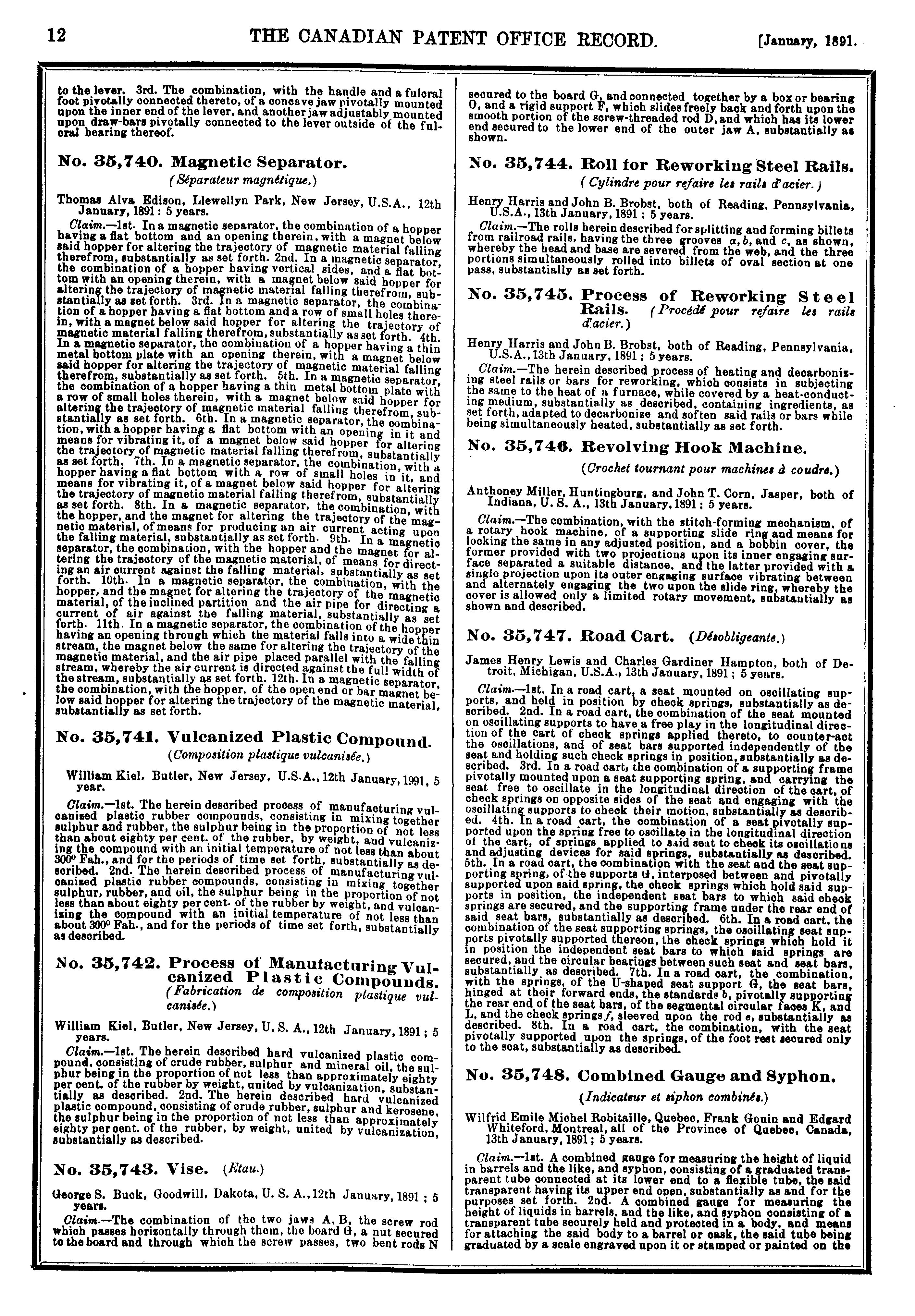 The Canadian Patent Office record : [Vol. 19, no. 1 (Jan. 1891)]