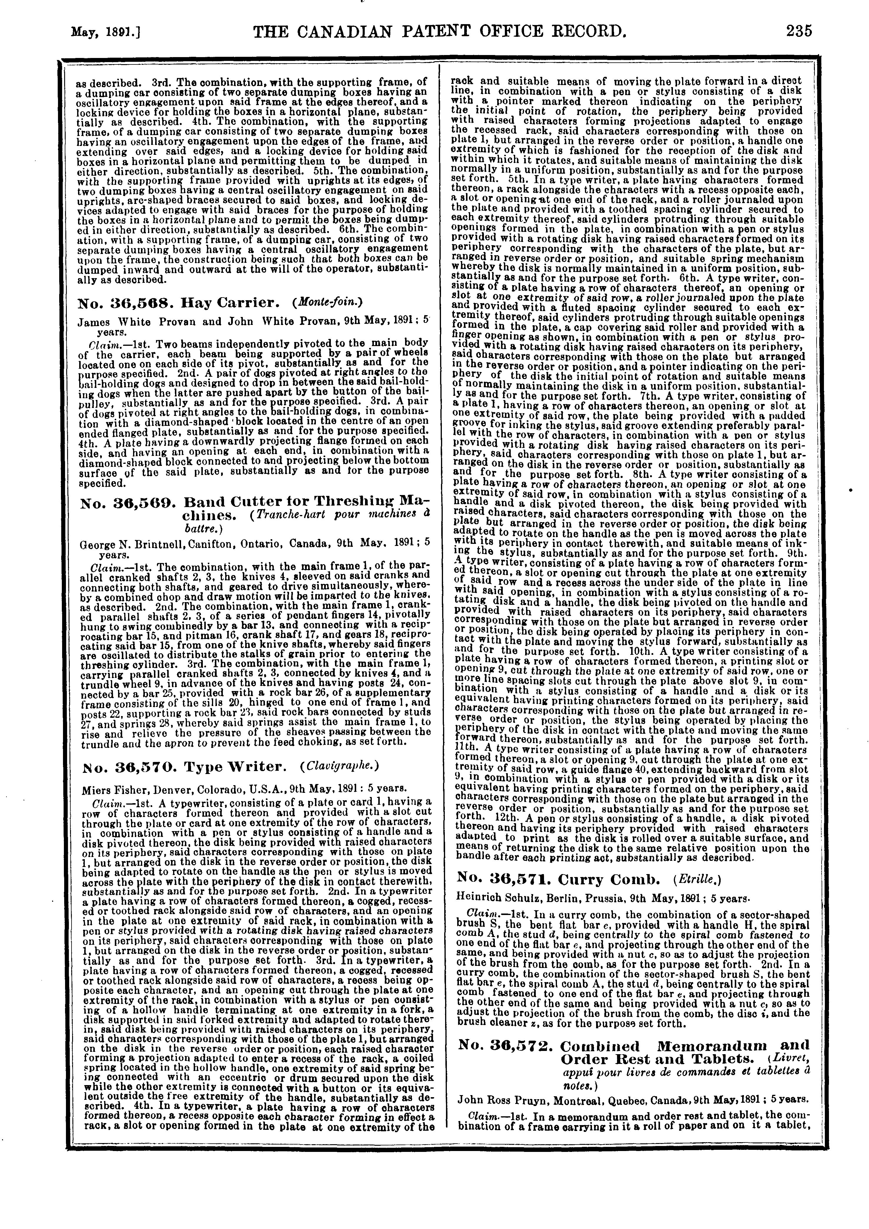The Canadian Patent Office record : [Vol. 19, no. 5 (May 1891)]