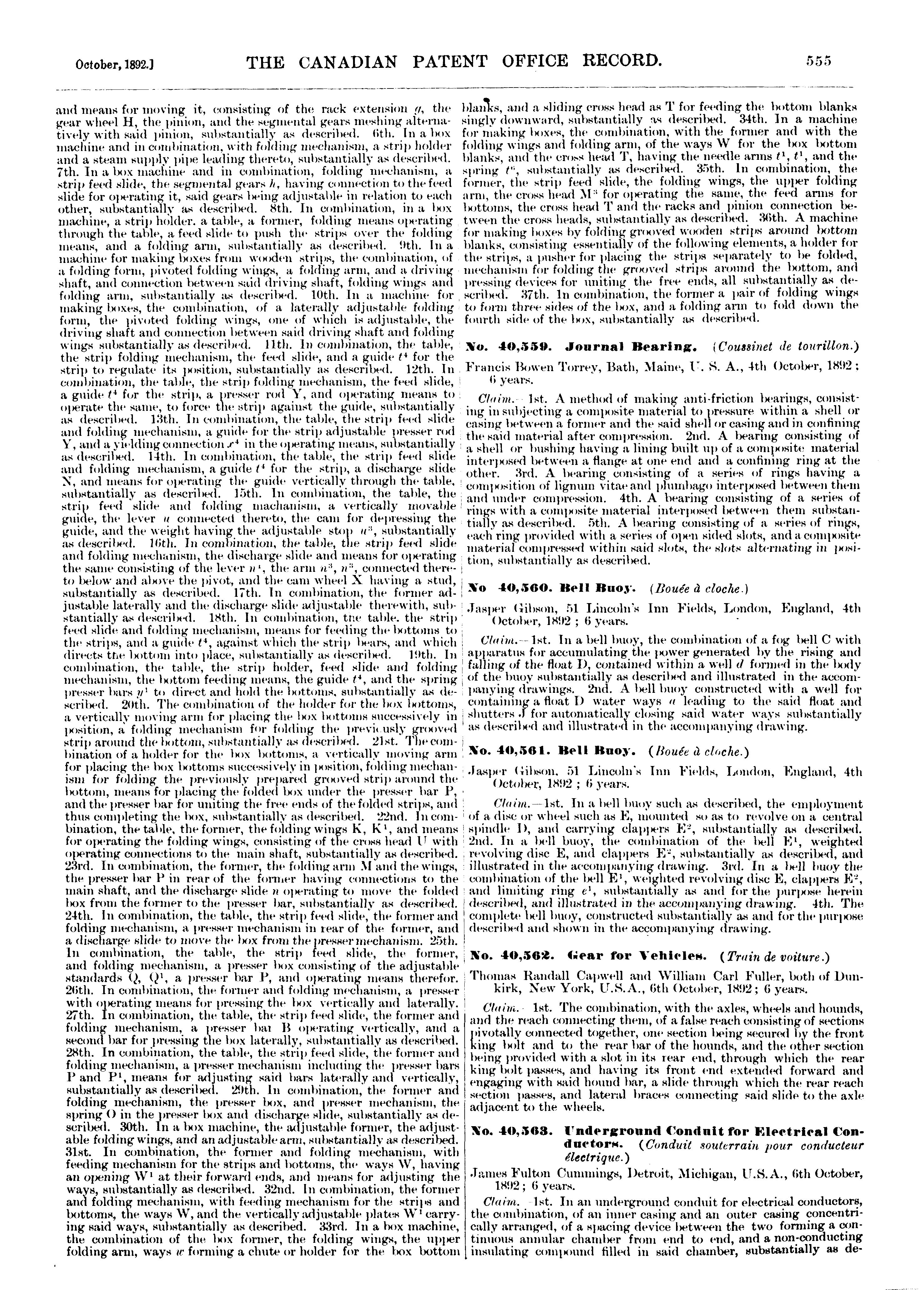 - The Canadian Patent Office record [Vol. 20, no. 10 (Oct. 1892)]