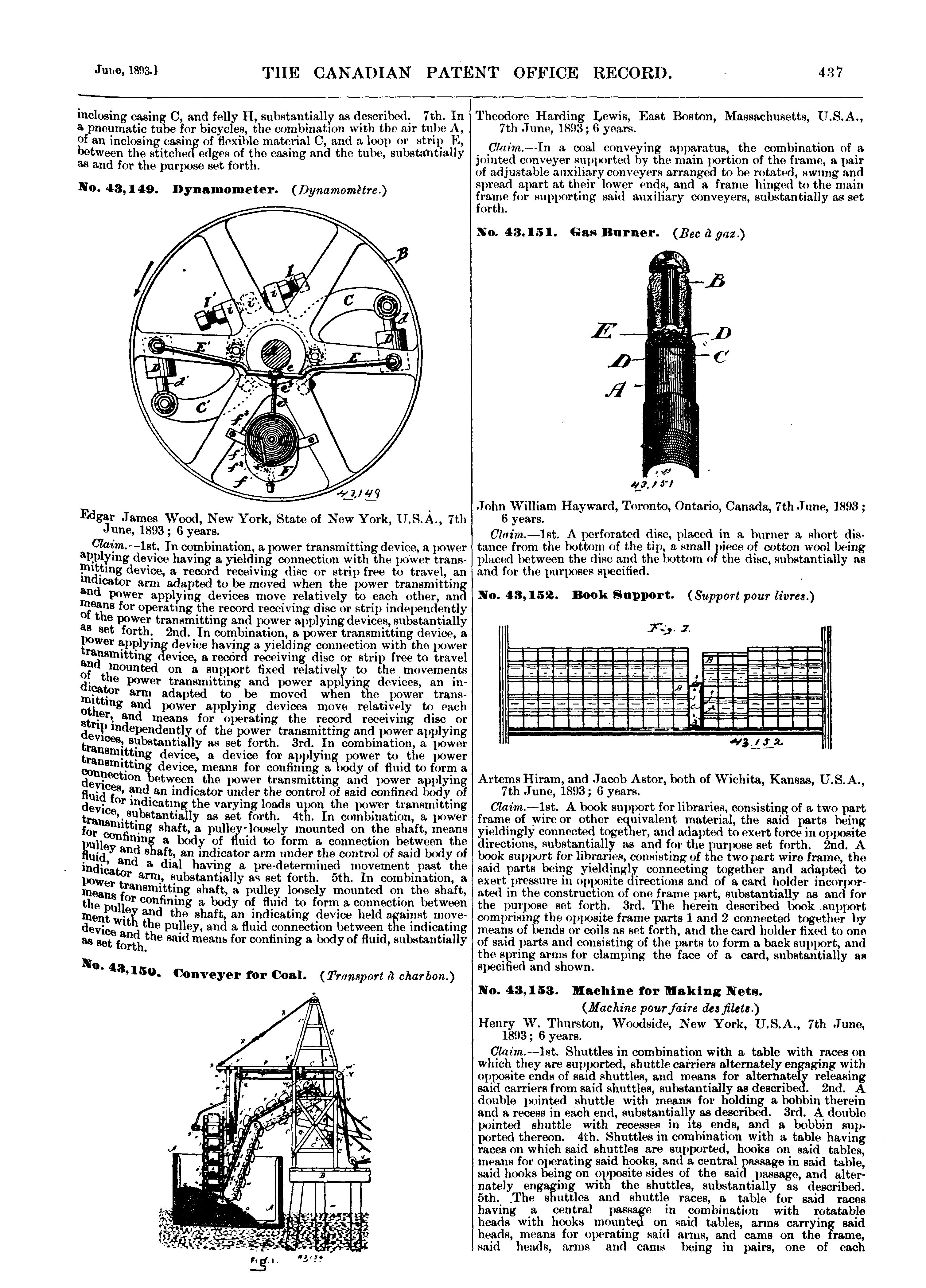 The Canadian Patent Office record : [Vol. 21, no. 6 (June 30, 1893)]