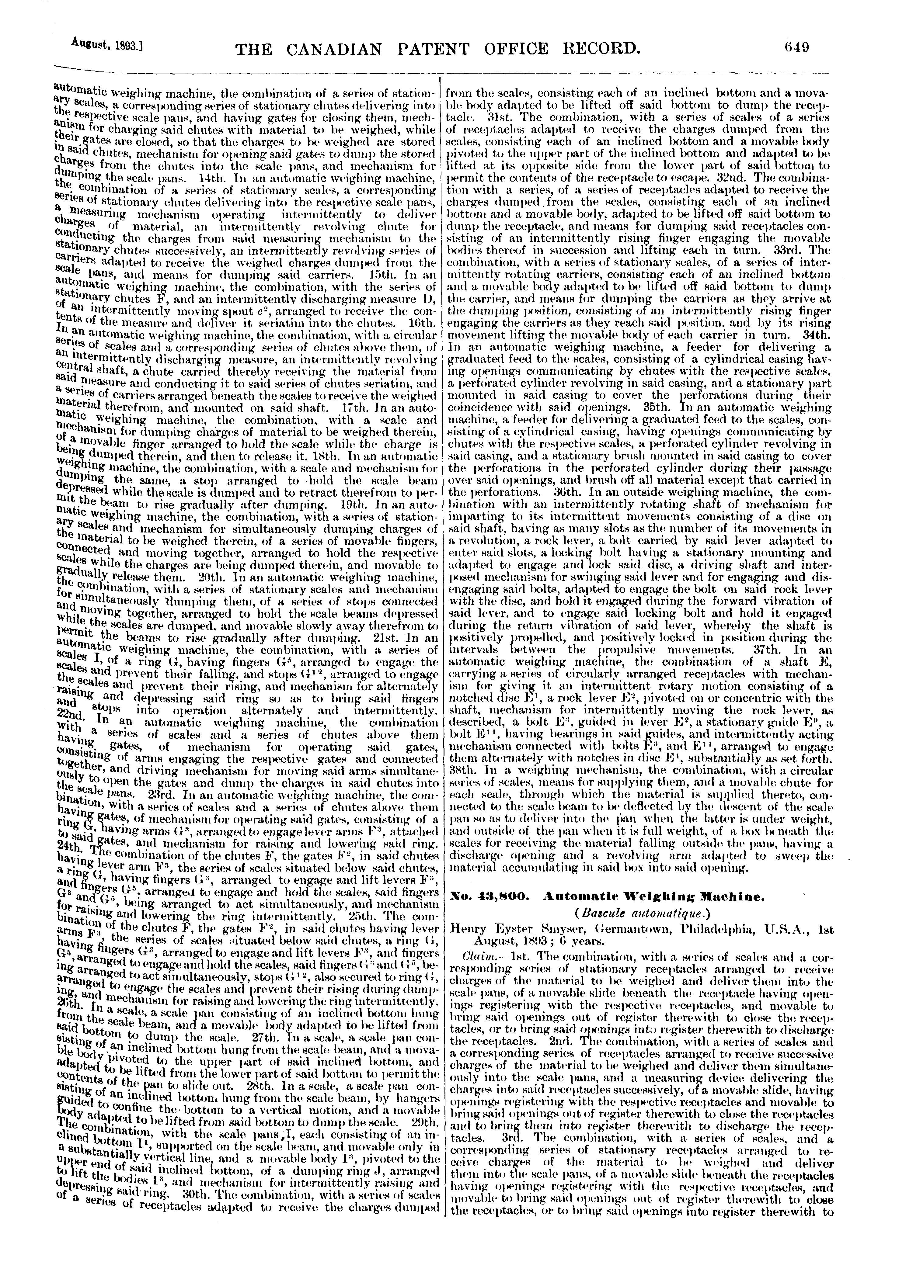 The Canadian Patent Office record : [Vol. 21, no. 8 (Aug. 31, 1893)]