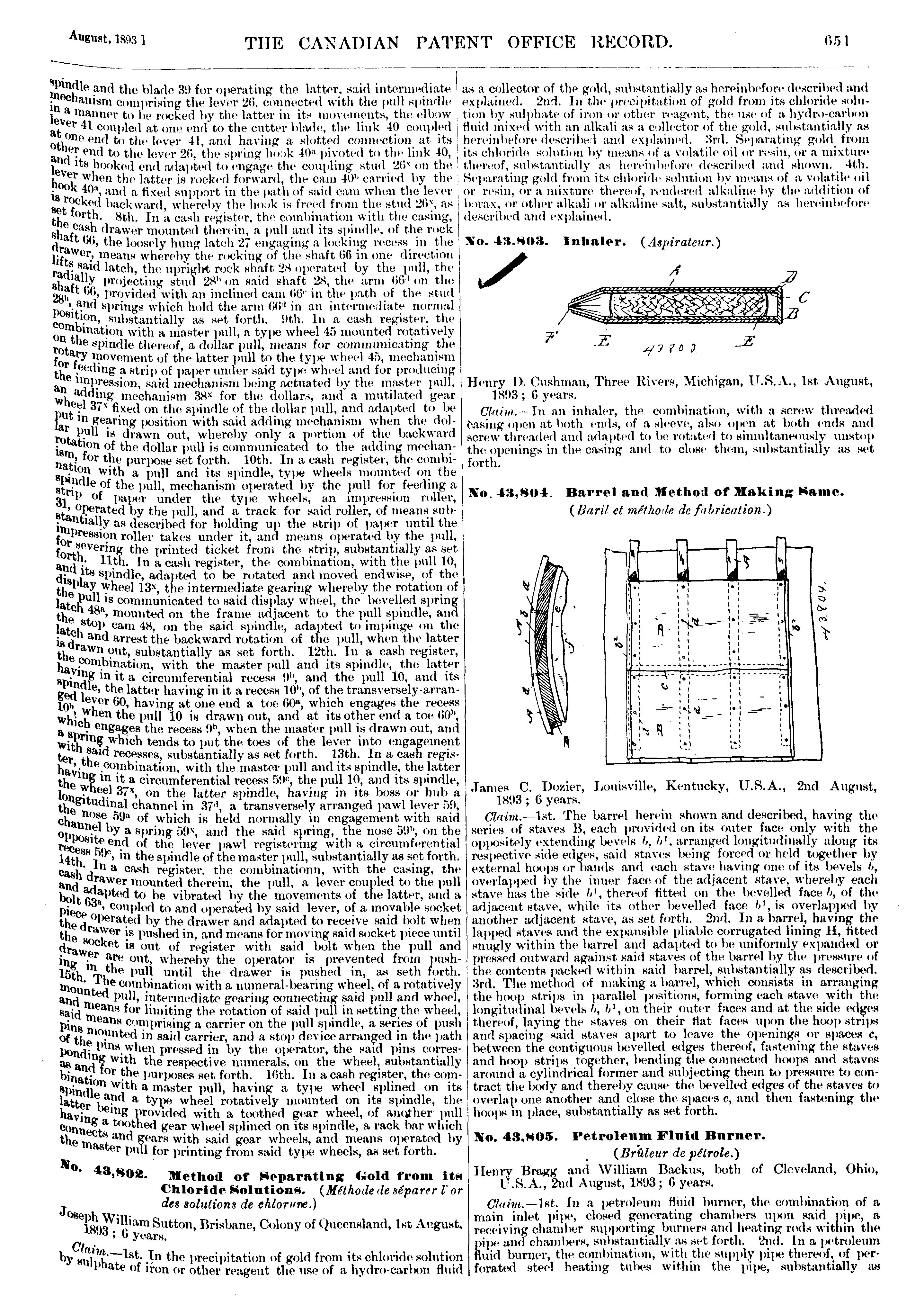 The Canadian Patent Office record : [Vol. 21, no. 8 (Aug. 31, 1893)]