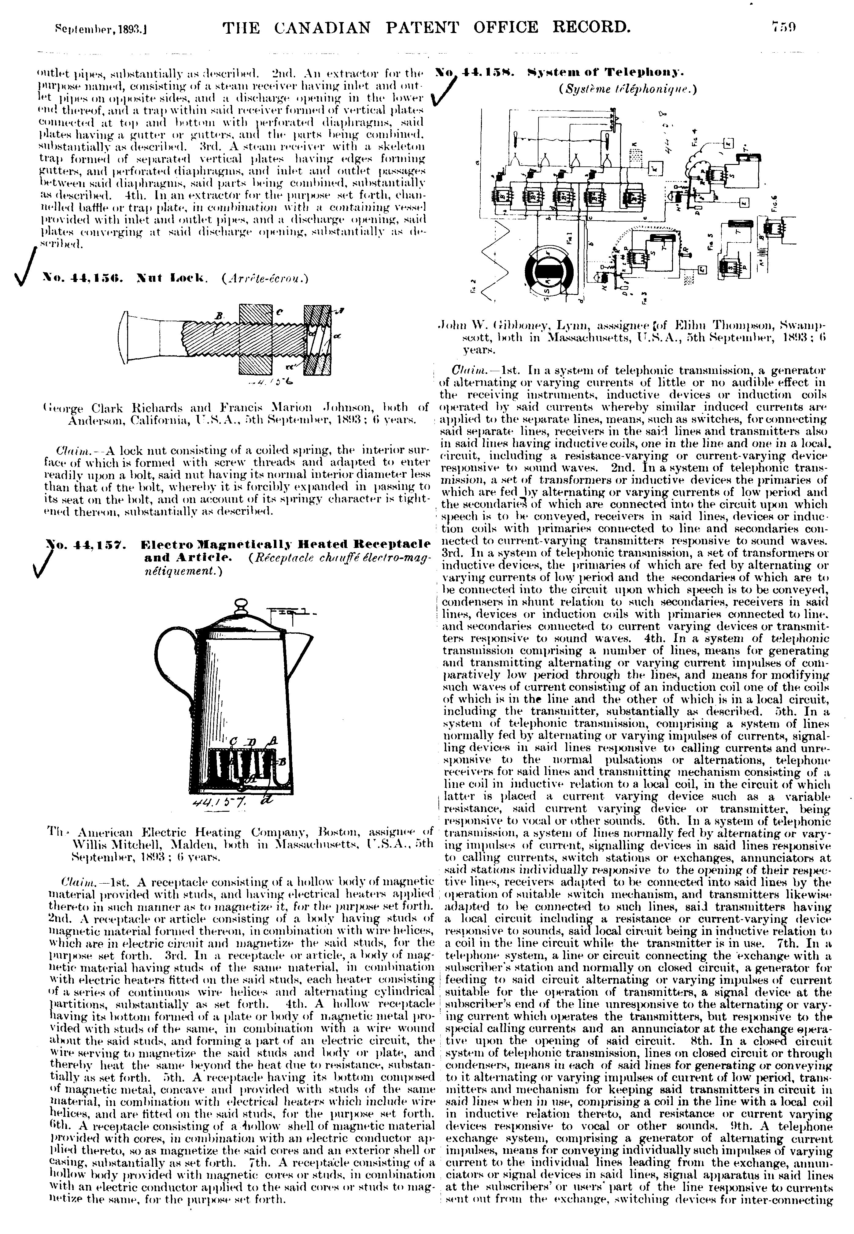The Canadian Patent Office record : [Vol. 21, no. 9 (Sept. 30, 1893)]