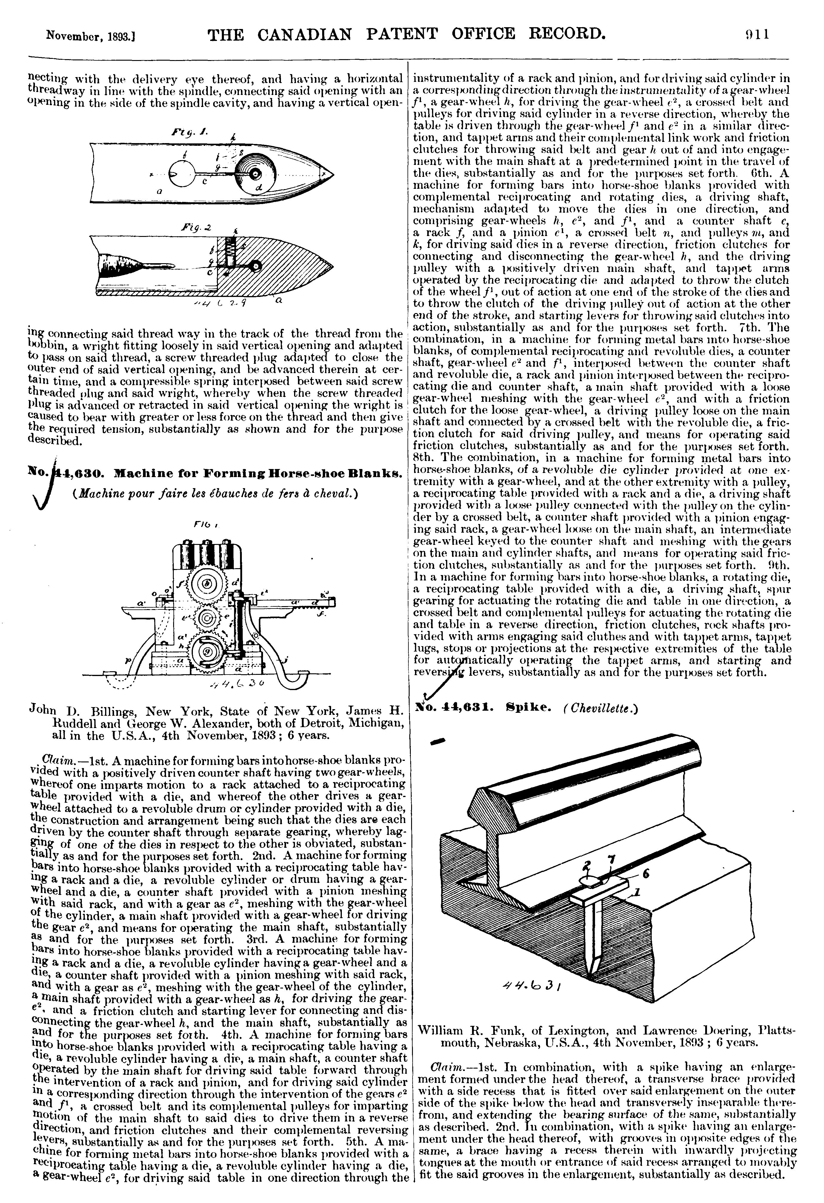 - The Canadian Patent Office record [Vol. 21, no. 11 (Nov. 30, 1893)]