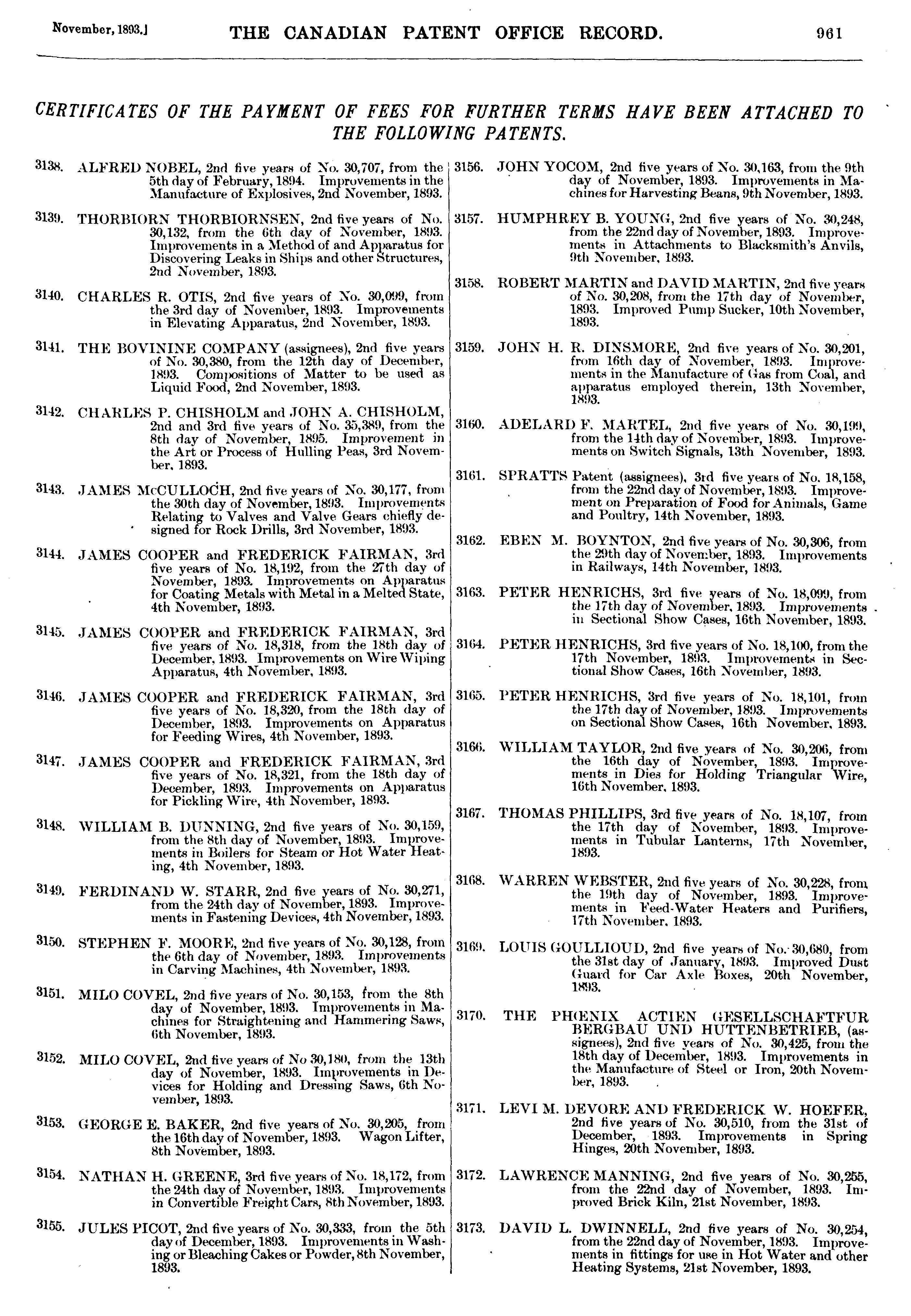 - The Canadian Patent Office record [Vol. 21, no. 11 (Nov. 30, 1893)]
