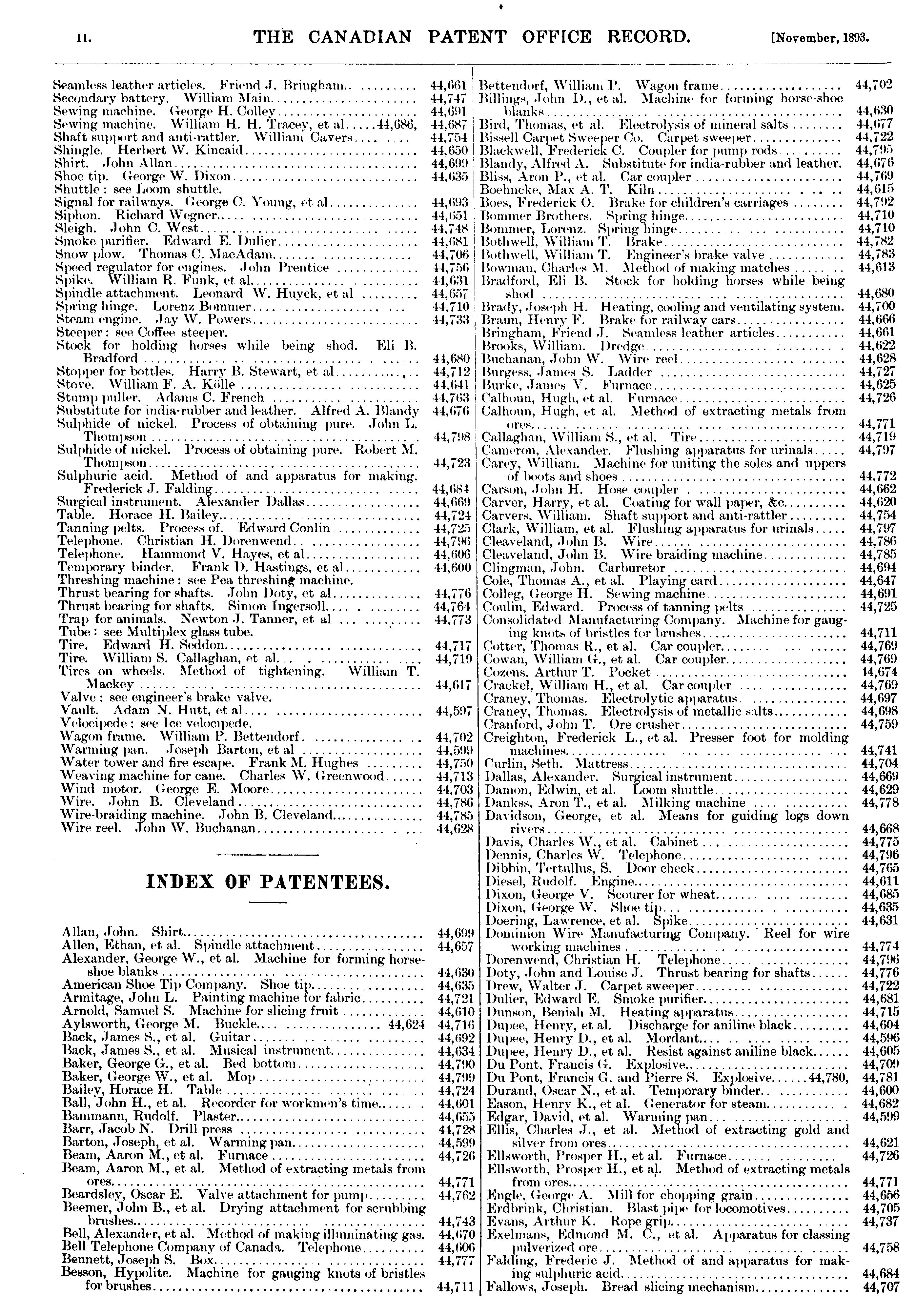 The Canadian Patent Office record : [Vol. 21, no. 11 (Nov. 30, 1893)]