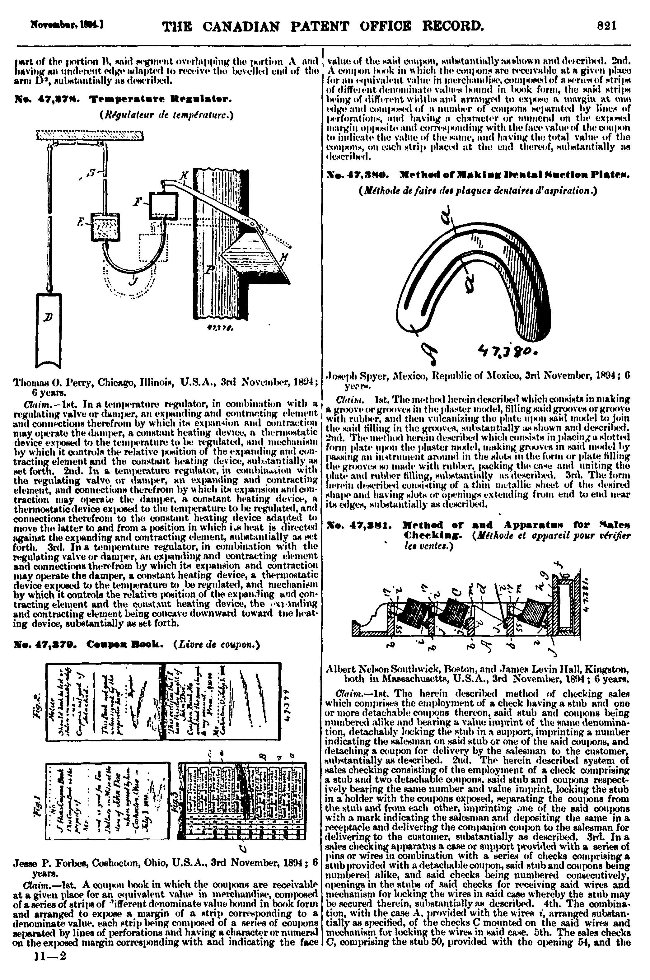 The Canadian Patent Office record : [Vol. 22, no. 11 (Nov. 30, 1894)]