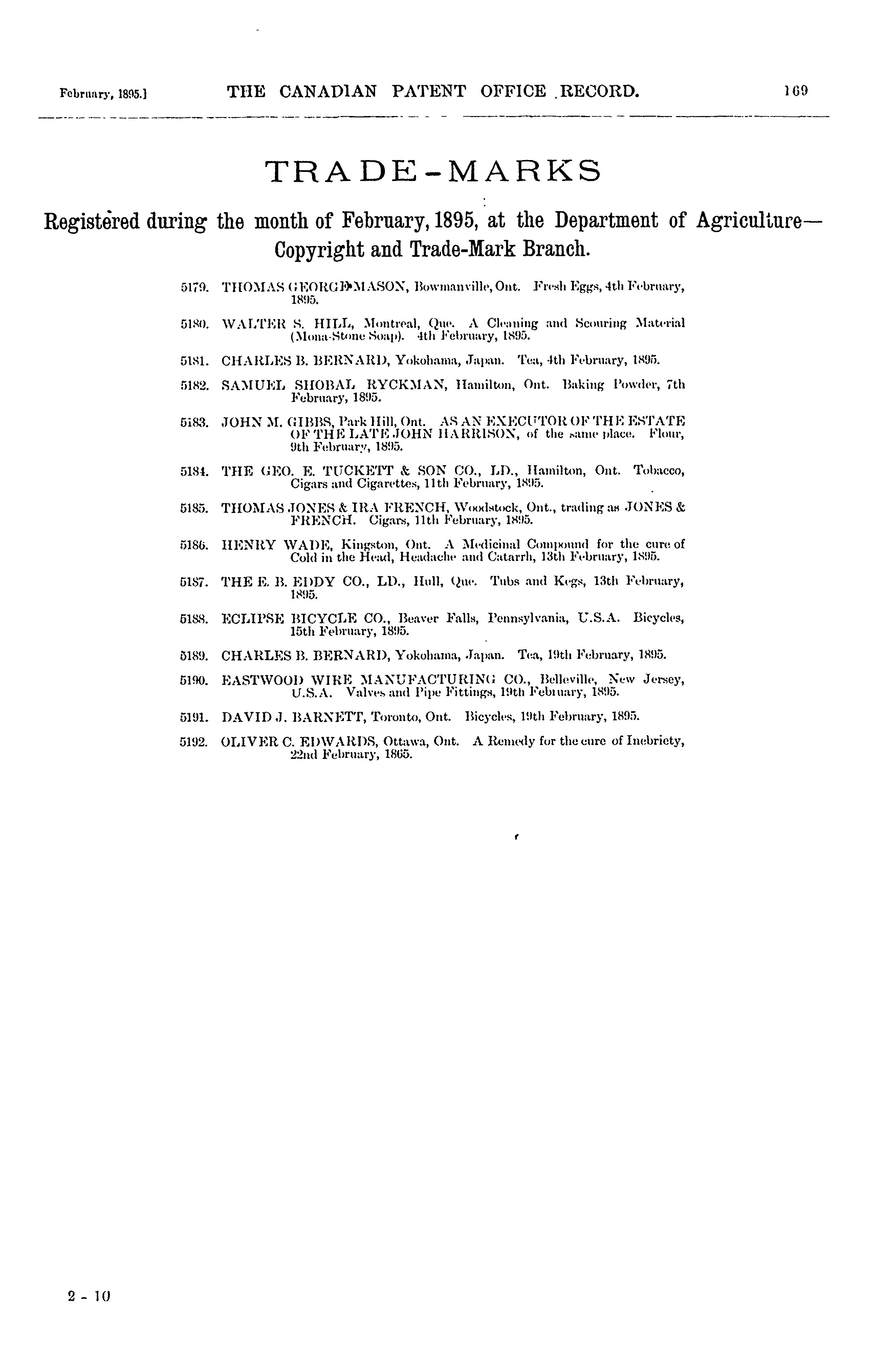 The Canadian Patent Office record : [Vol. 23, no. 2 (Feb. 28, 1895)]