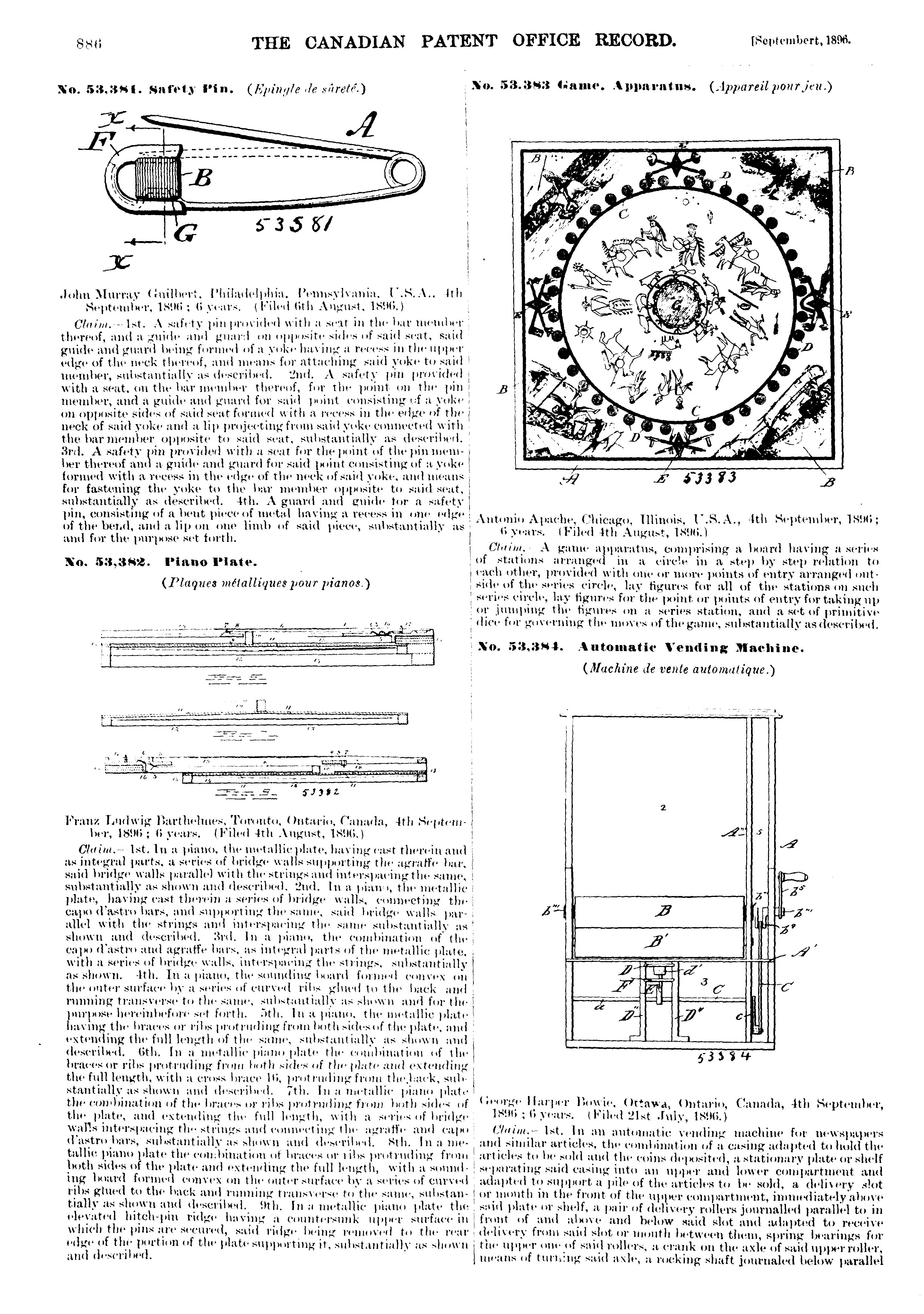 - The Canadian Patent Office record [Vol. 24, no. 9 (Sept. 30, 1896)]