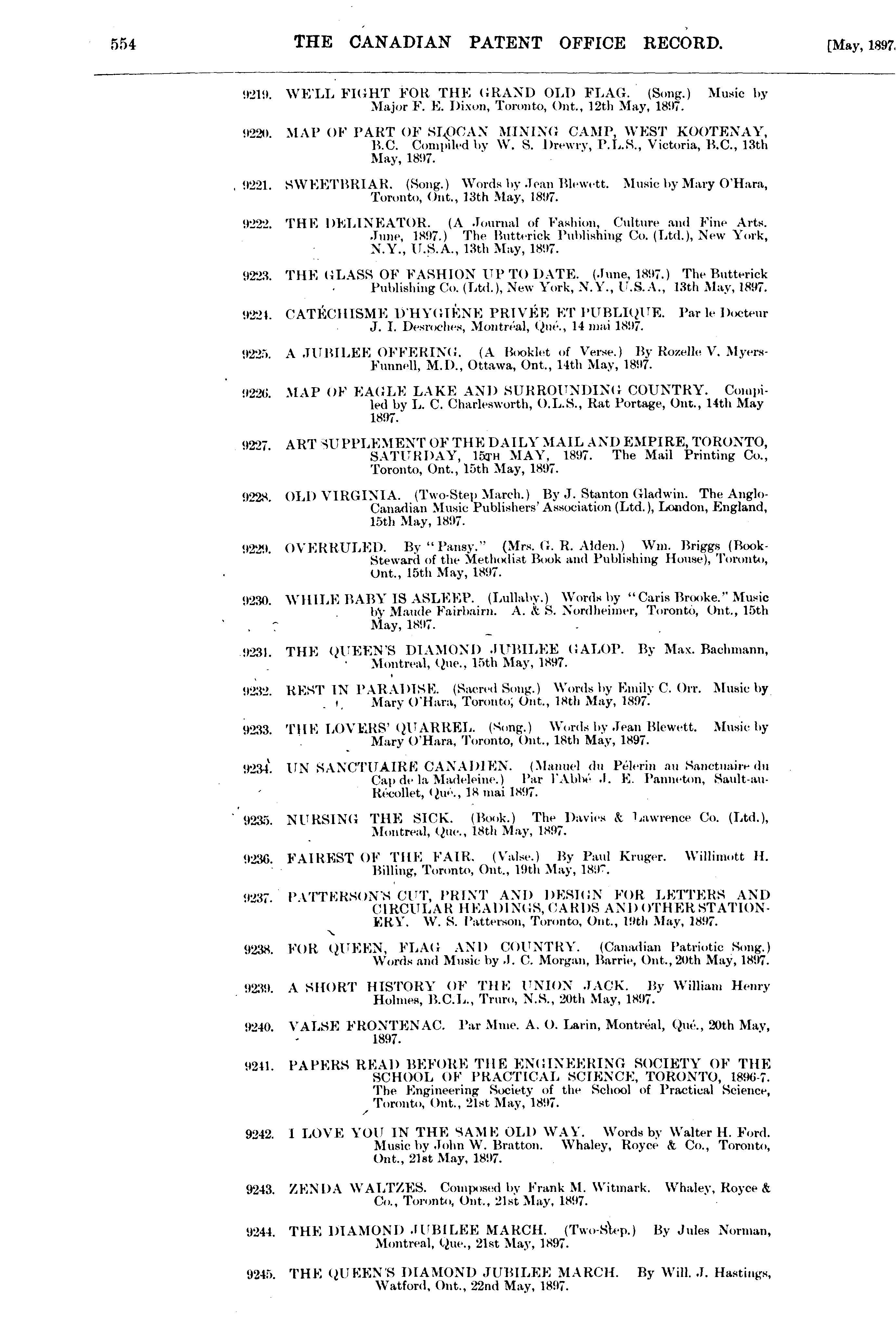 - The Canadian Patent Office record [Vol. 25, no. 5 (May 31, 1897)]