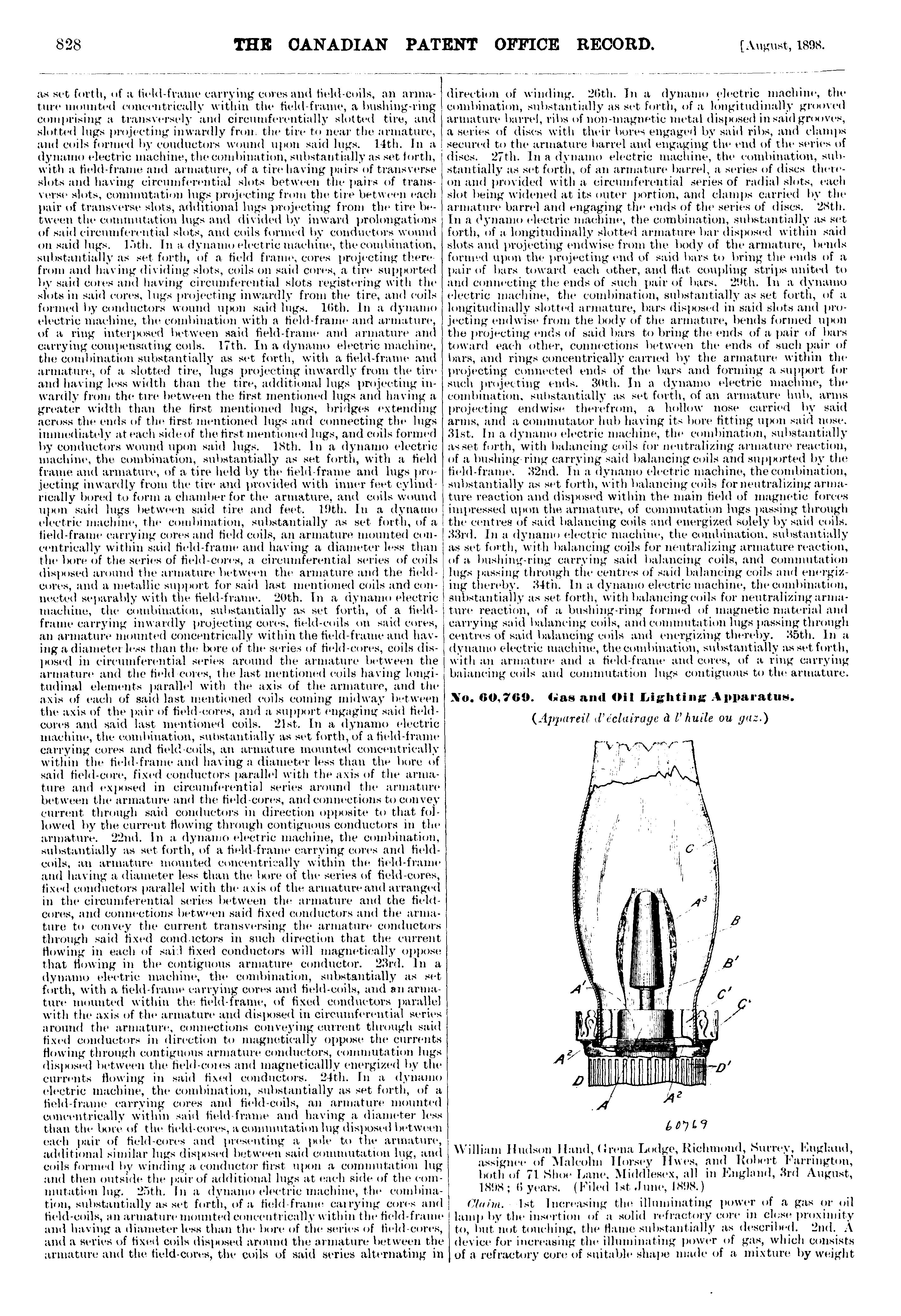The Canadian Patent Office record : [Vol. 26, no. 8 (Aug. 31, 1898)]