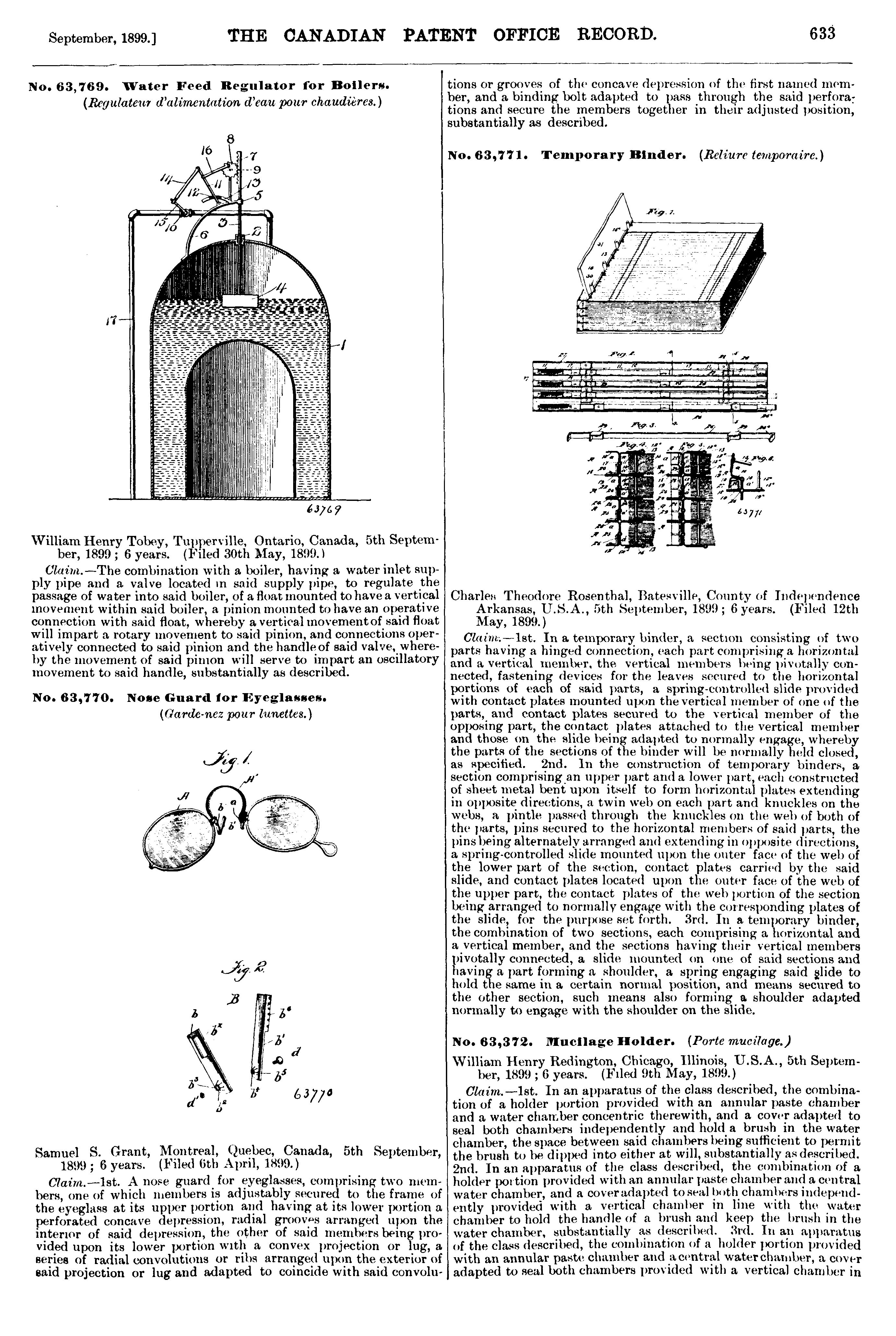 The Canadian Patent Office record : [Vol. 27, no. 9 (Sept. 30, 1899)]