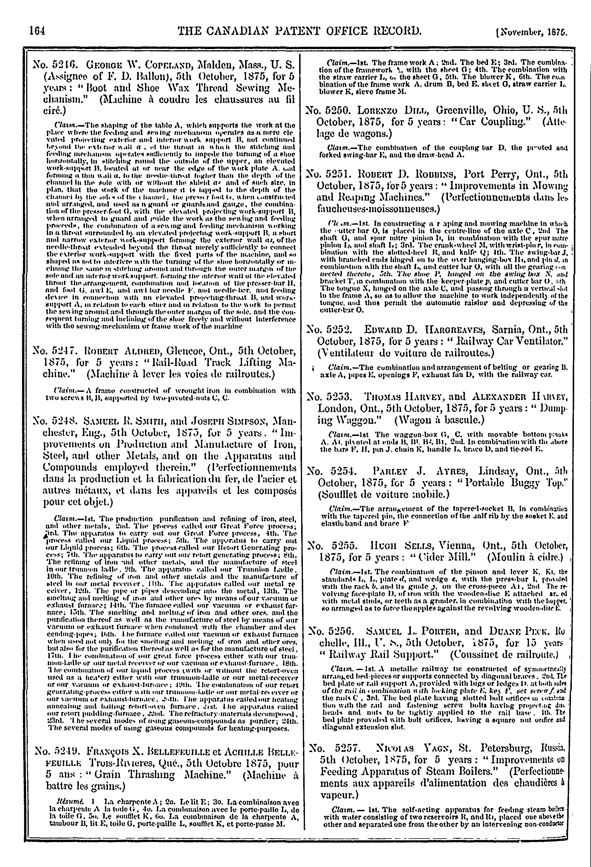 The Canadian Patent Office record [Vol. 3, no. 11 (Nov. 1875)]