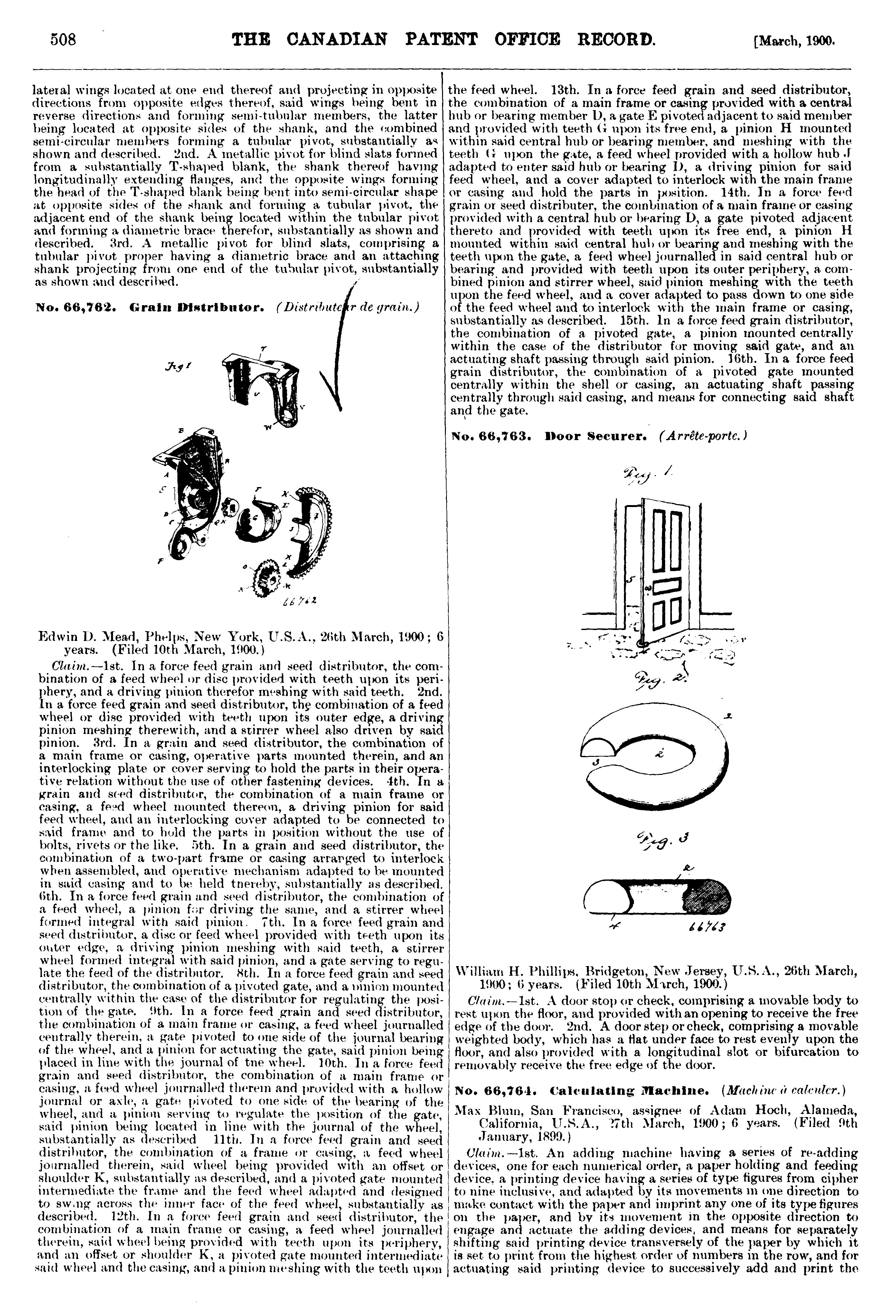 The Canadian Patent Office record : [Vol. 28, no. 3 (Mar. 31, 1900)]