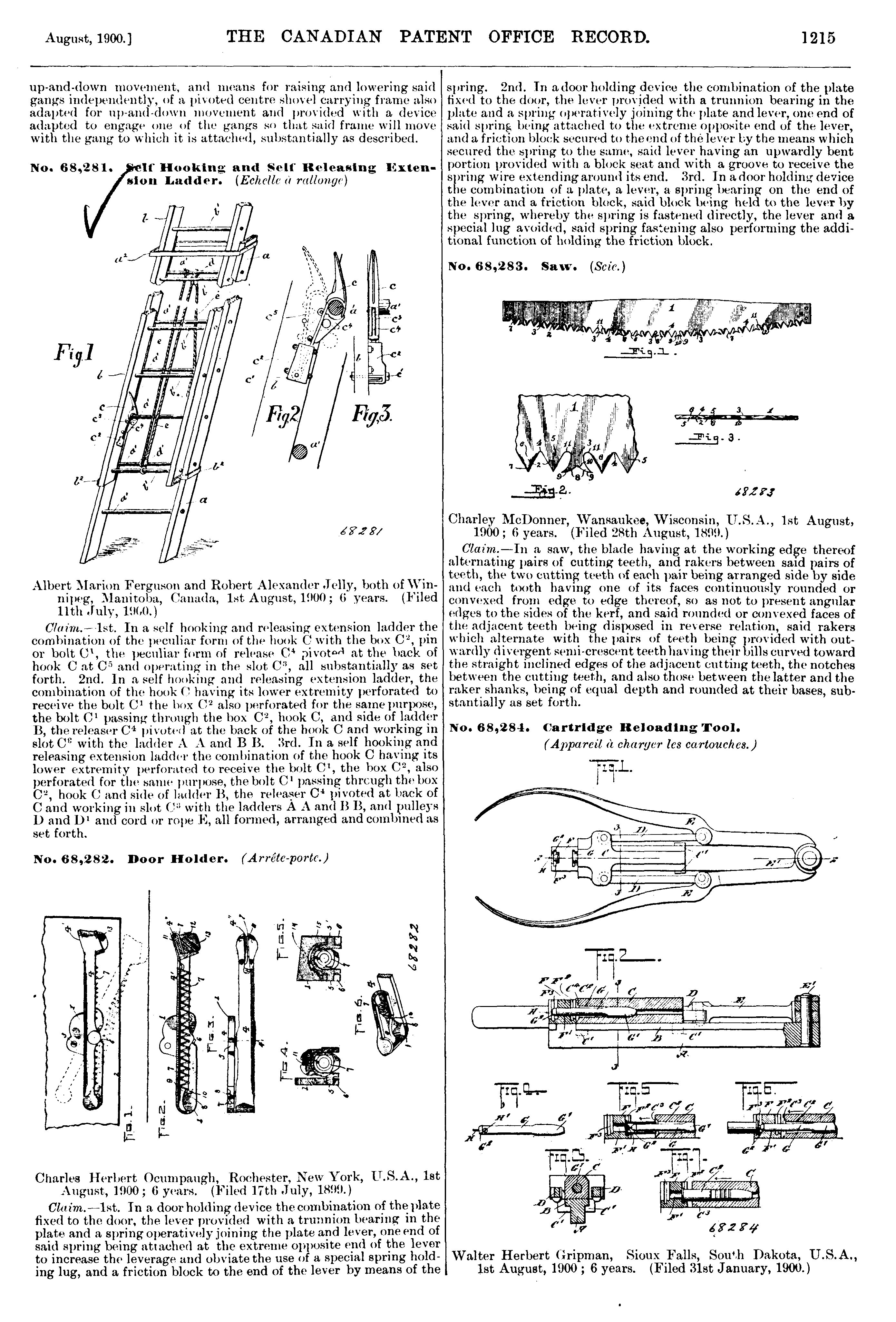 The Canadian Patent Office record : [Vol. 28, no. 8 (Aug. 31, 1900)]