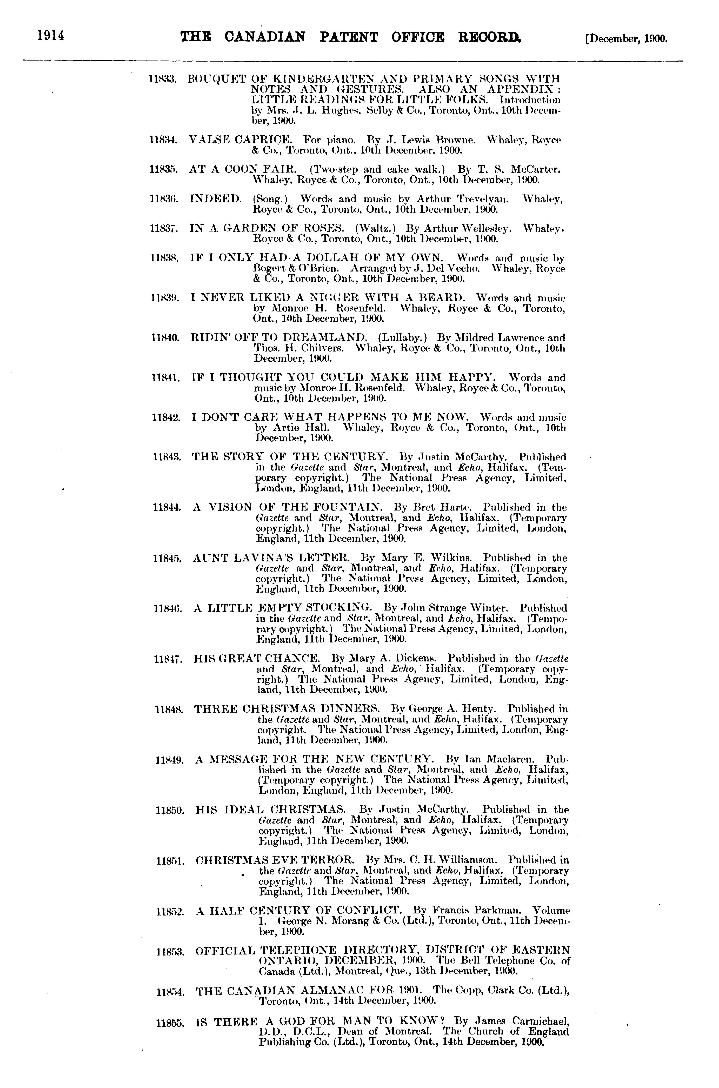 The Canadian Patent Office record : [Vol. 28, no. 12 (Dec. 31, 1900)]