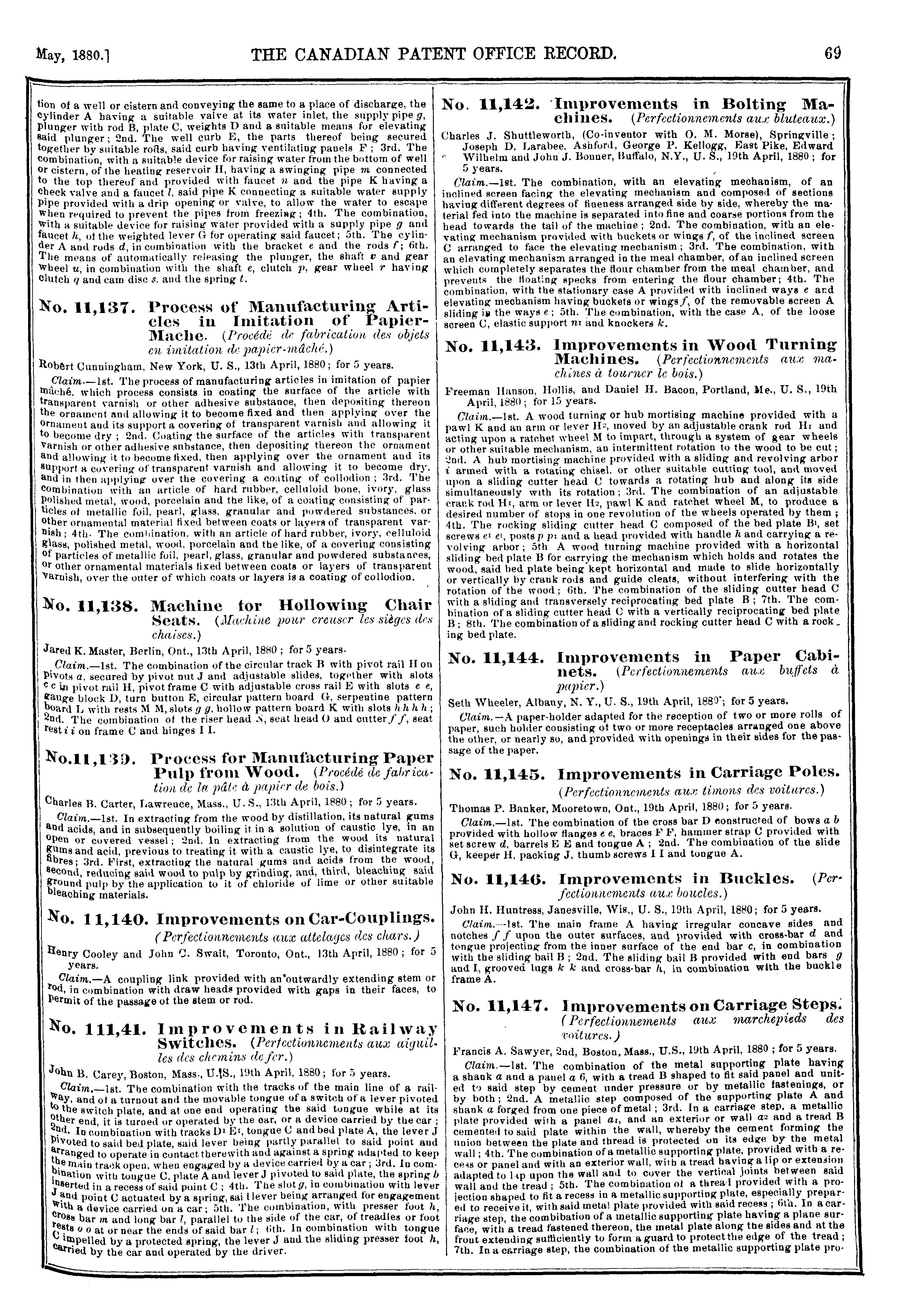 The Canadian Patent Office record [Vol. 8, no. 5 (May 1880)]