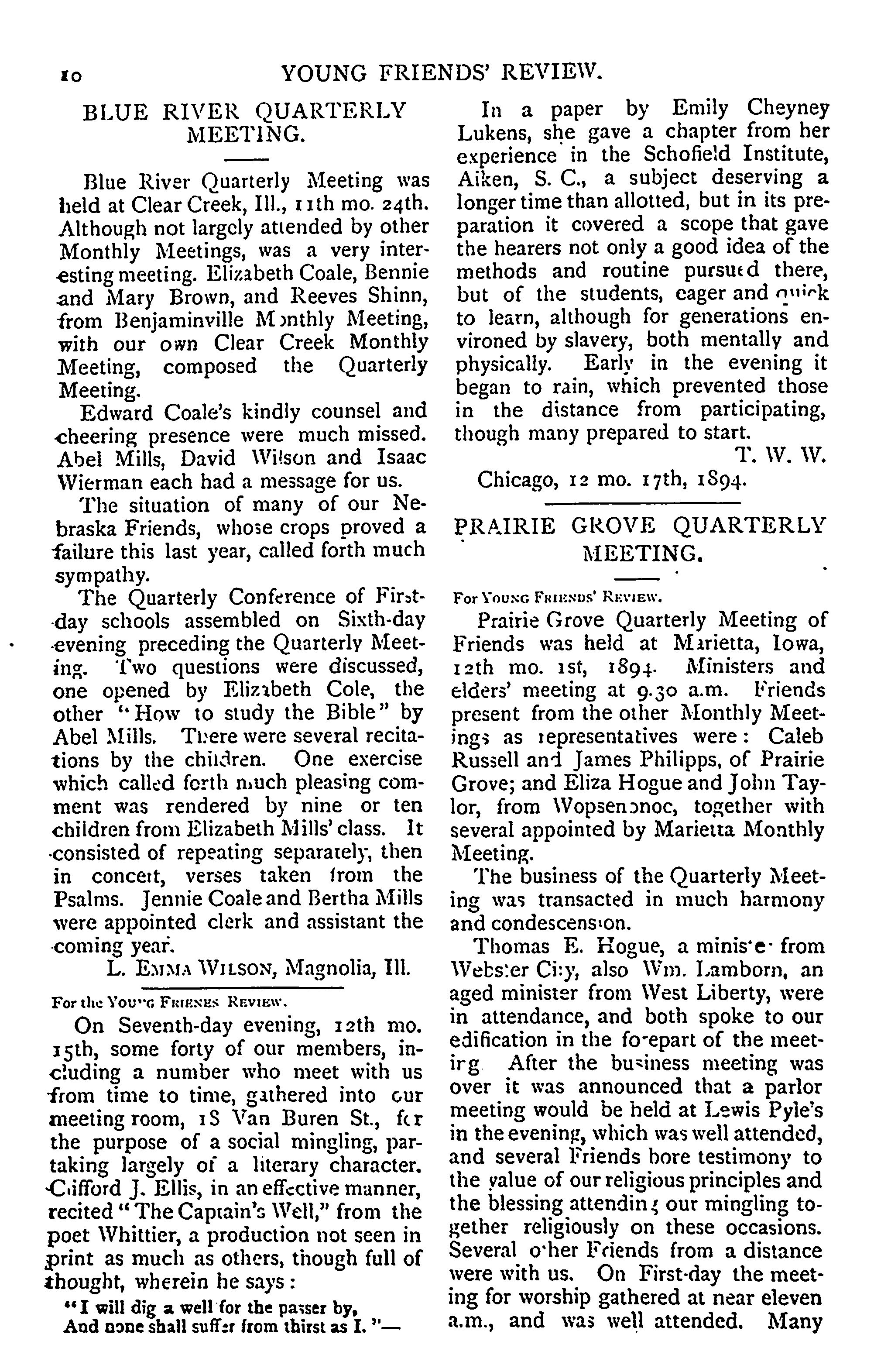 - Young Friends' review [Vol. 10, no. 1 (1st month [Jan.] 1, 1895)]