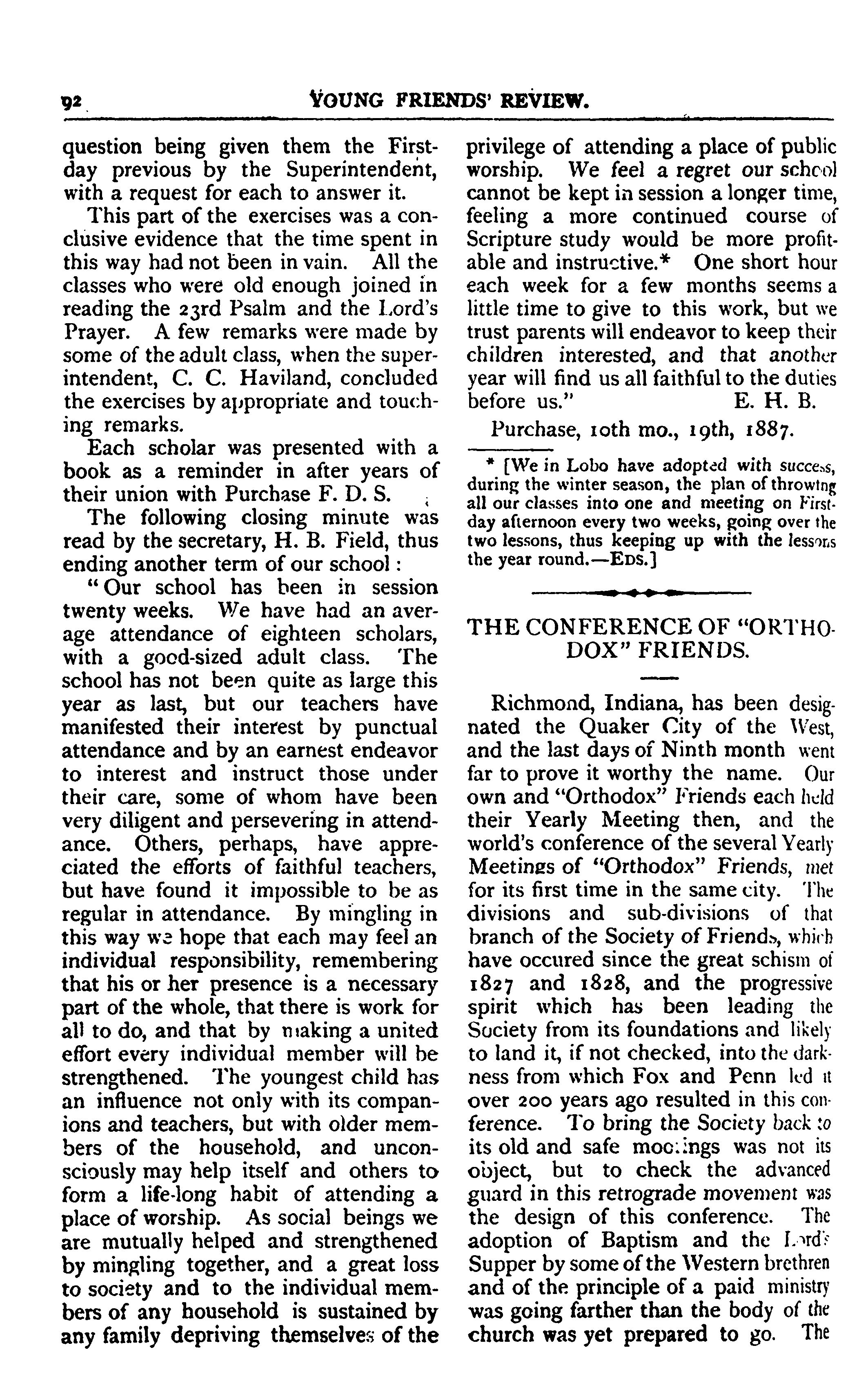 - Young Friends' review [Vol. 2, no. 6 (11th month [Nov.] 1887)]
