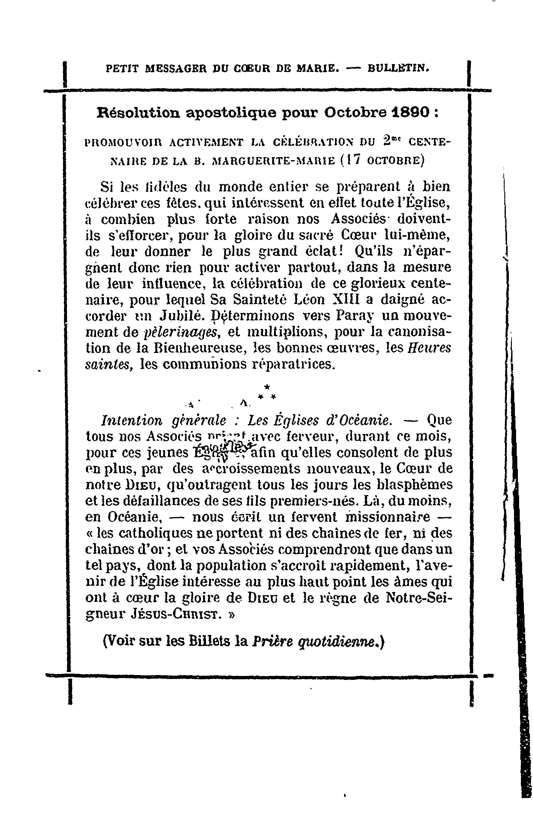 - Le petit messager des coeurs de Jésus et de Marie [1re année, no 10 (oct. 1890)]