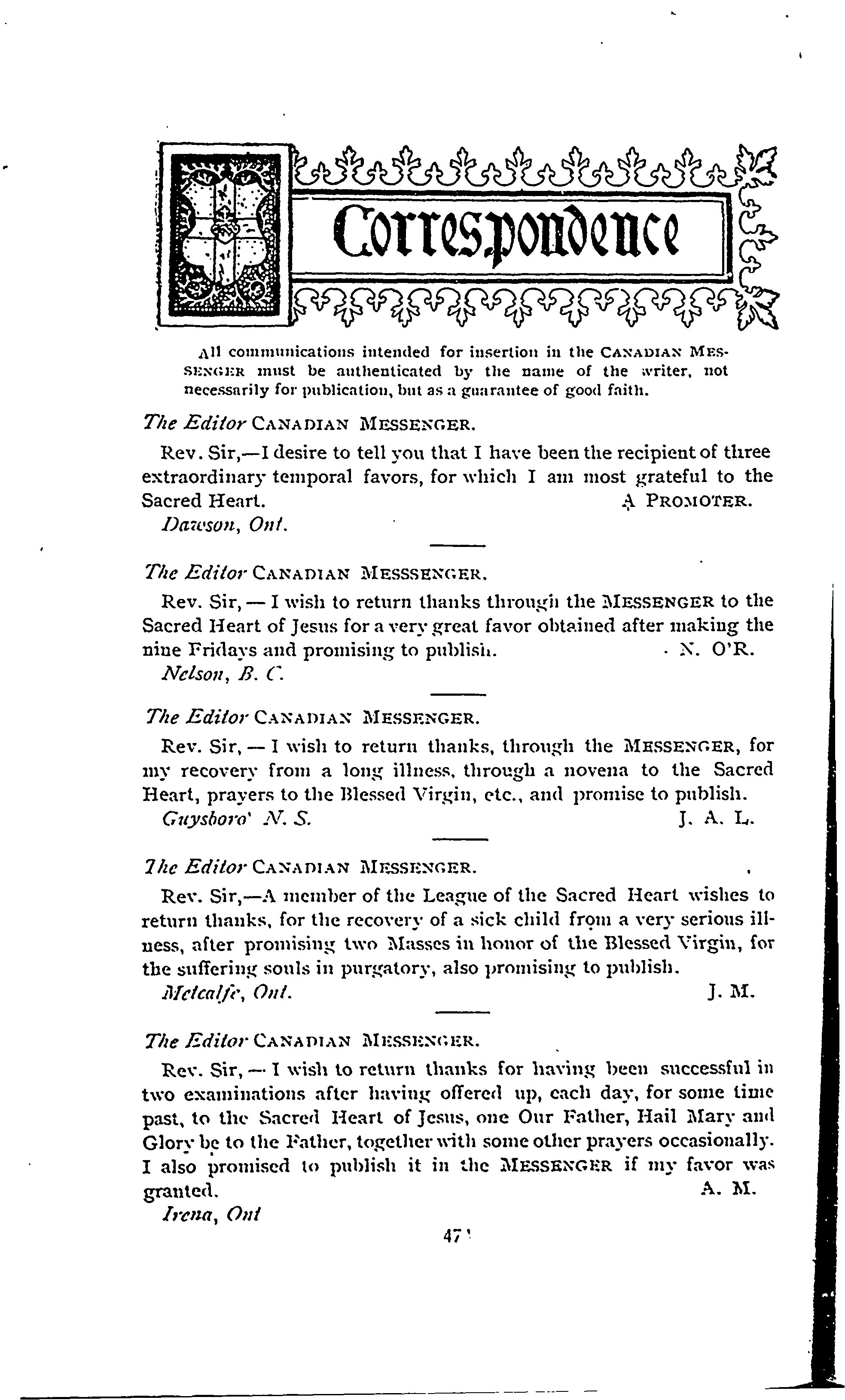 - The Canadian messenger of the Sacred Heart [Vol. 10, no. 10 (Oct. 1900)]