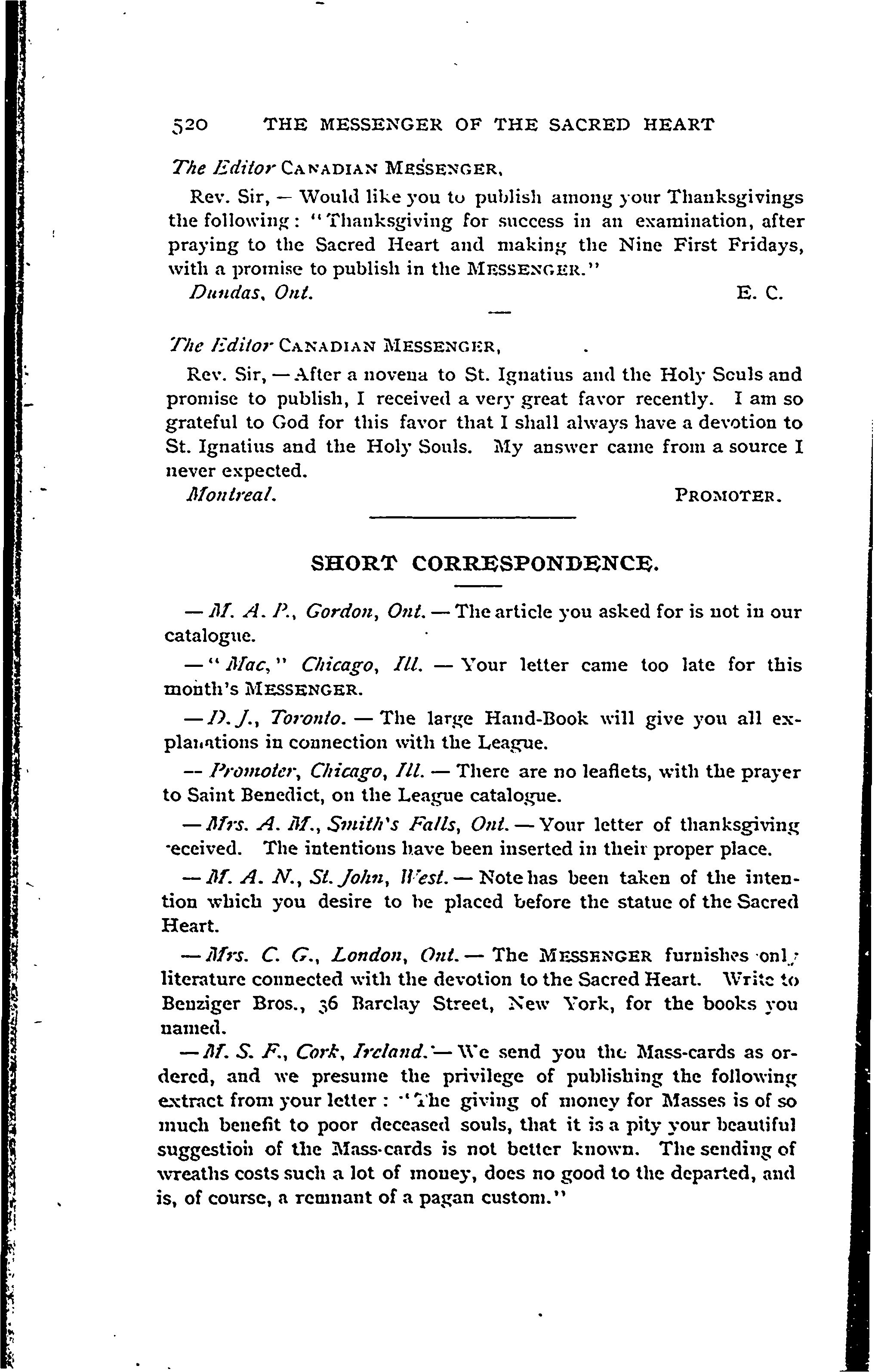 - The Canadian messenger of the Sacred Heart [Vol. 10, no. 11 (Nov. 1900)]