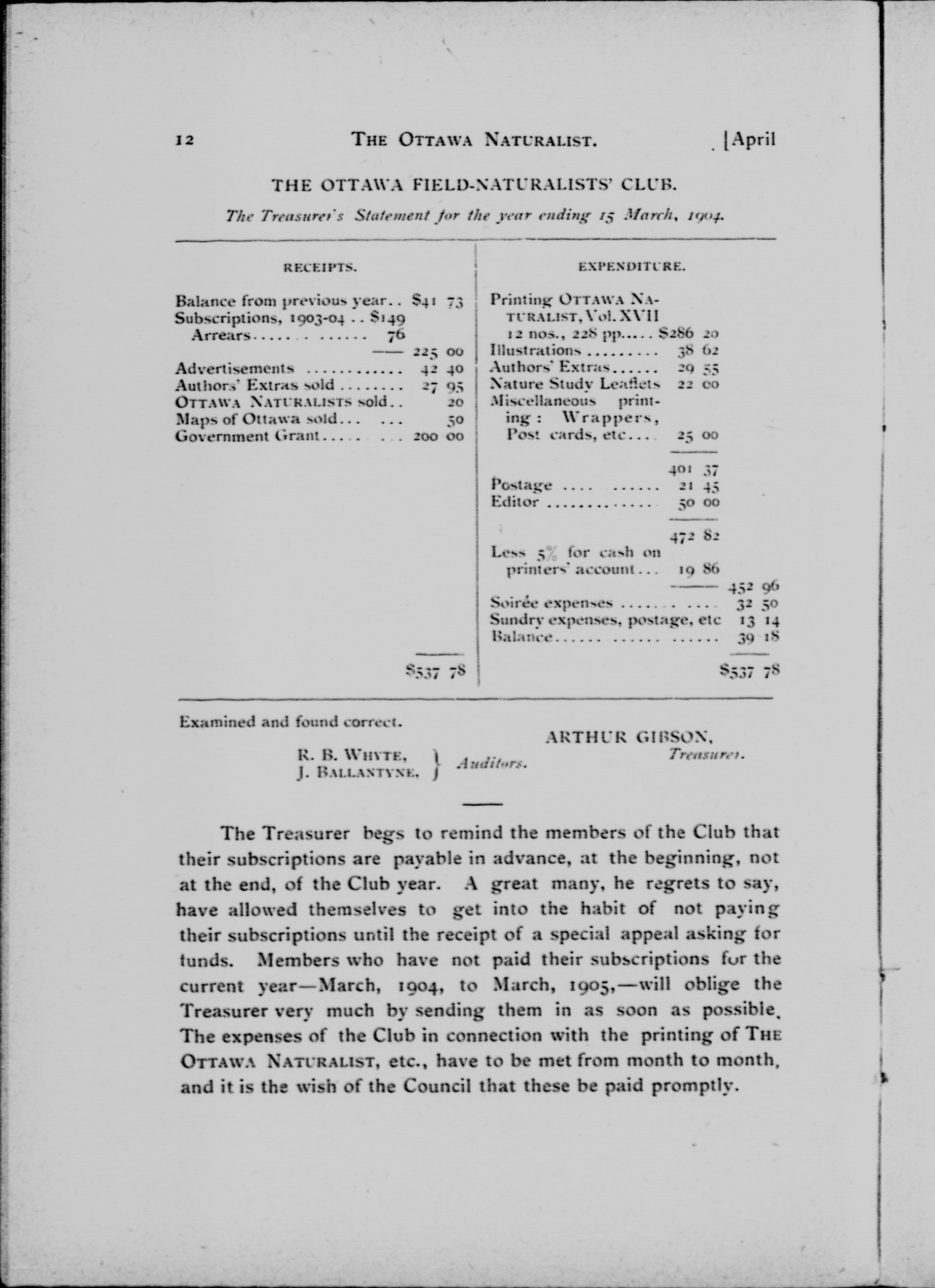 The Ottawa naturalist : Vol. 18, no. 1 (Apr. 1904)