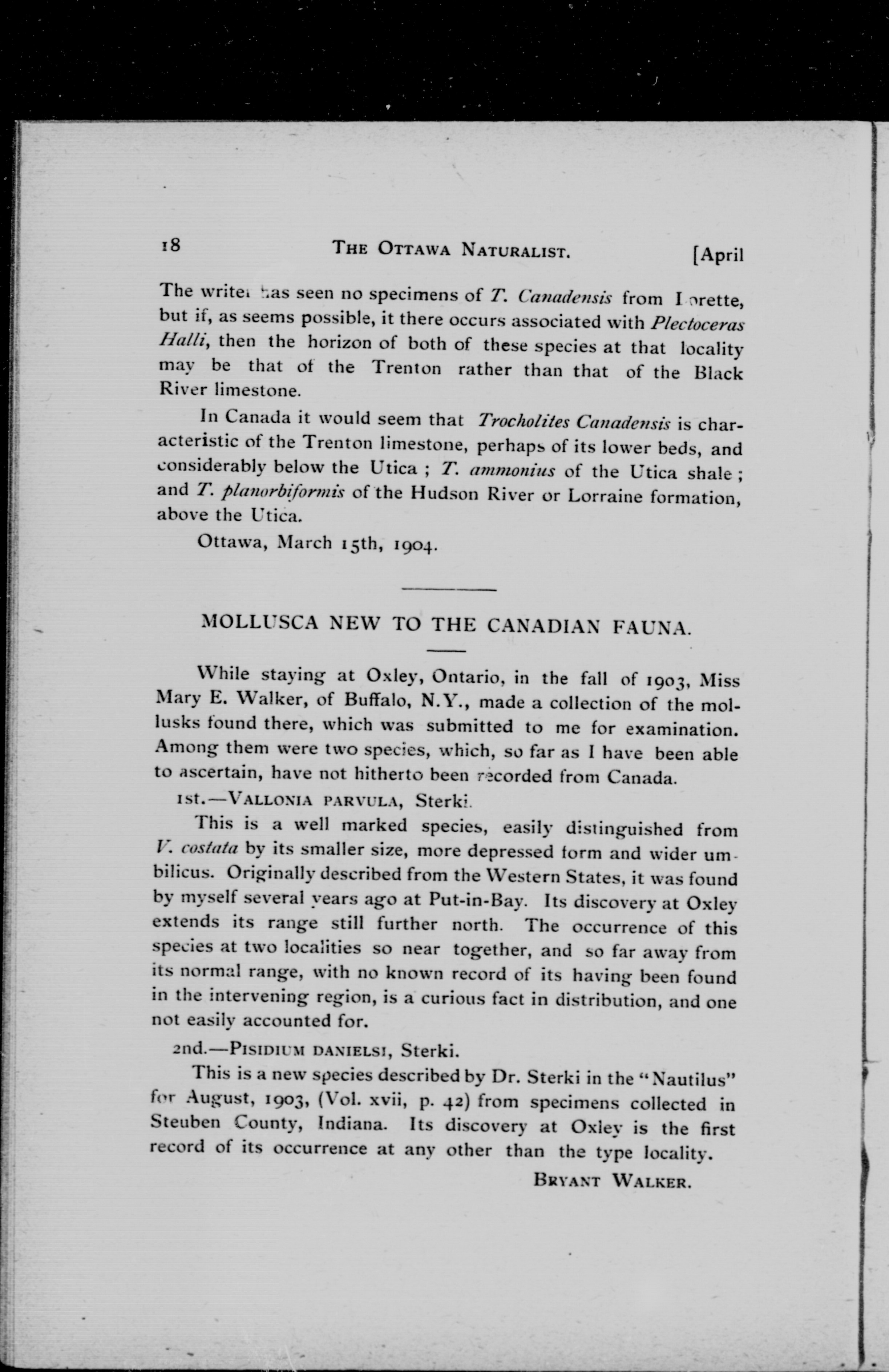 The Ottawa naturalist : Vol. 18, no. 1 (Apr. 1904)